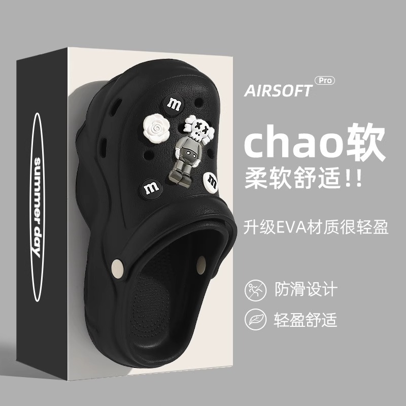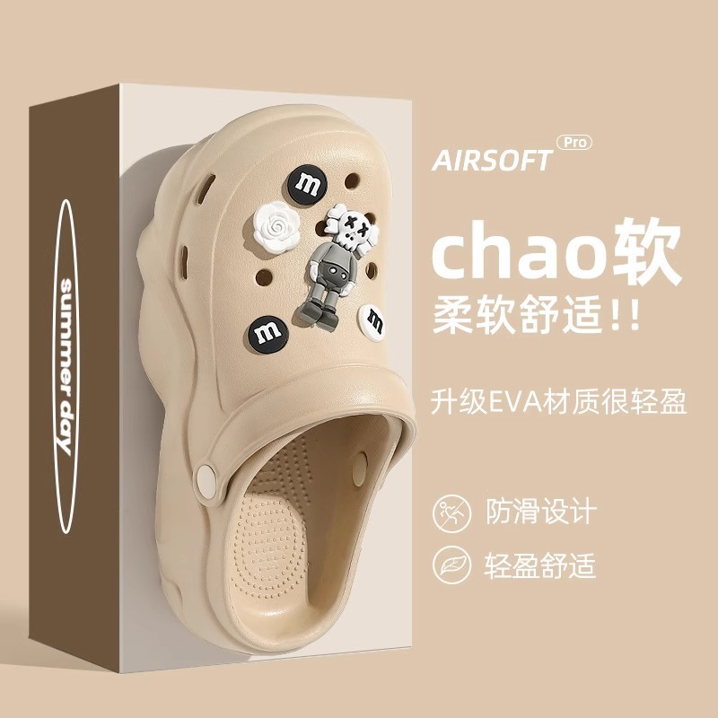 Stomp Feeling 두꺼운 밑창 높은 EVA 홀 신발 여성의 여름 외부 착용 미끄럼 방지 2025 새로운 인터넷 기념 비치 슬리퍼