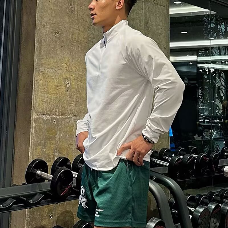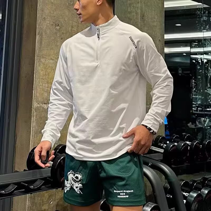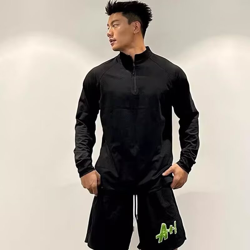 새로운 도착 근육 피트니스 남자 농구 형제 훈련 옷 반 지퍼 스포츠 플러스 사이즈 긴 소매 티셔츠 탑