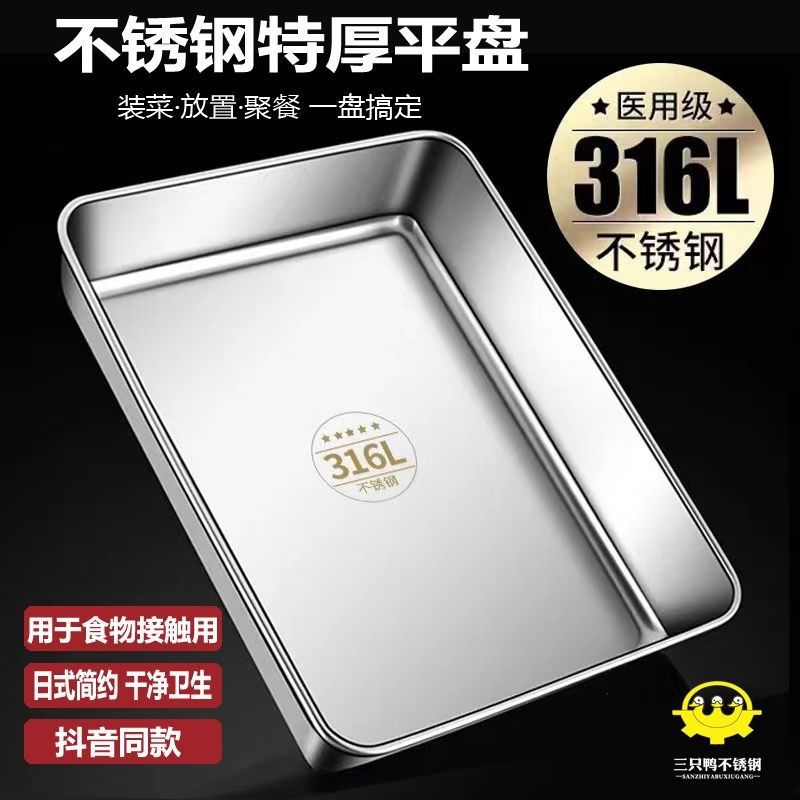 식품 등급 316 스테인레스 스틸 스퀘어 베이슨 스퀘어 플레이트 직사각형 깊이 평평한 바닥 트레이 패스트 푸드 서빙 뷔페 플레이트스토어 가기