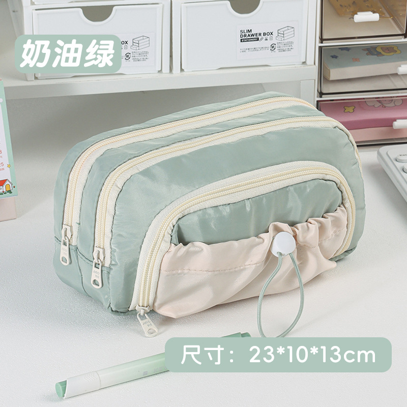 중학생을위한 크림 컬러 연필 케이스 대용량 고가의 문구 상자 간단한 연필 상자 스타일 문구 보관 가방스토어 가기