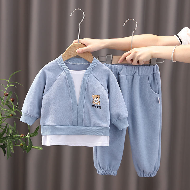[6799 명 컬렉션] 2024 년 새 소년 가을 세트 아기 어린이 봄과 가을 긴 소매 스웨터 작은 투피스스토어 가기