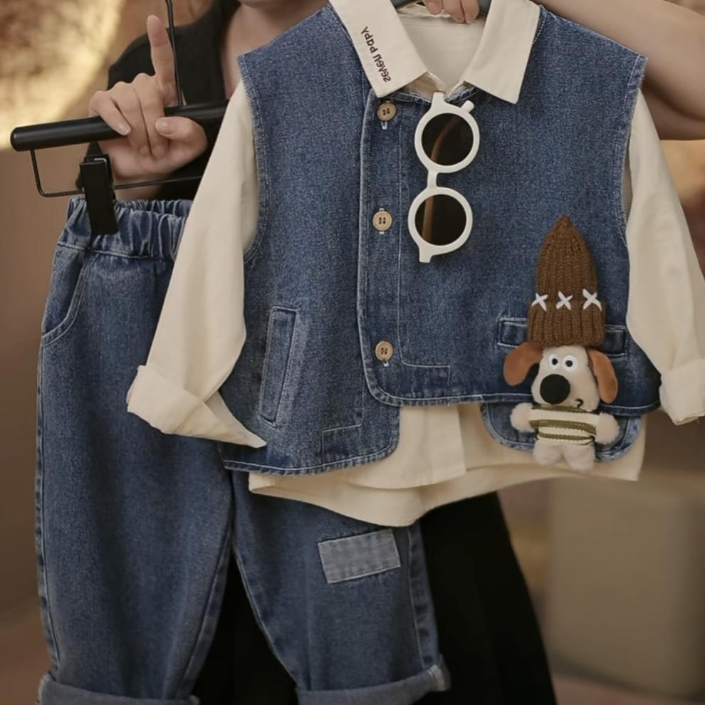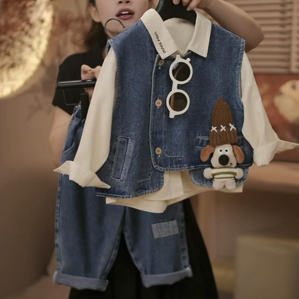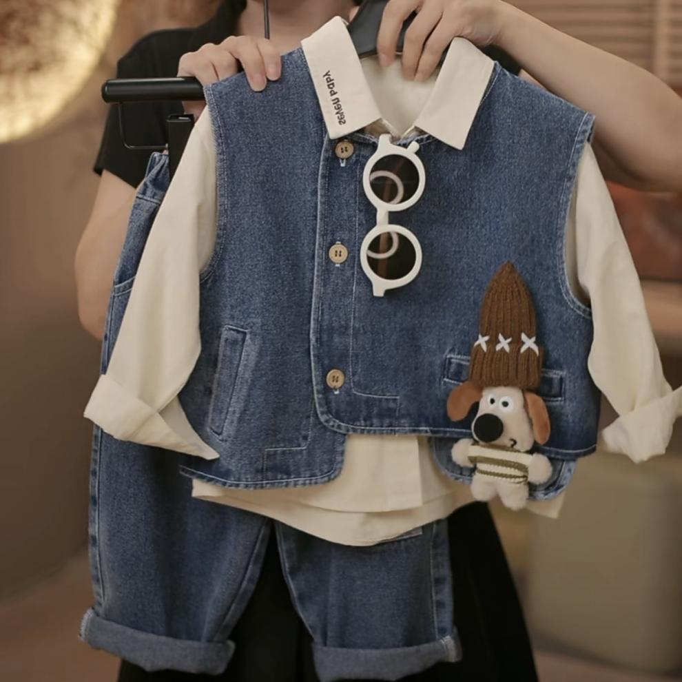 [4688 칭찬] 소년 가을 원피스 2025 세트 봄 · 가을 아기 새 어린이 외국식 데님 조끼 3스토어 가기