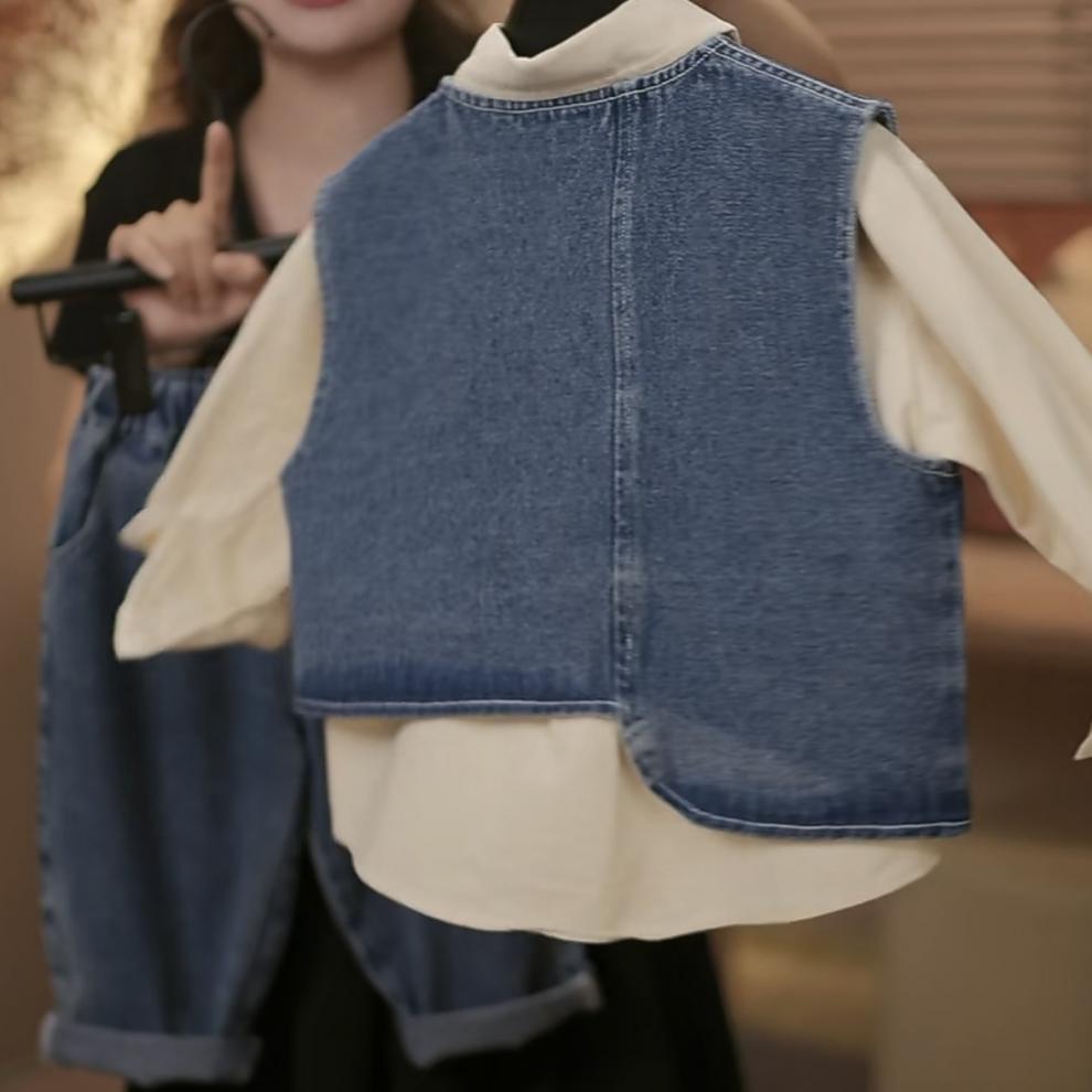 [4688 칭찬] 소년 가을 원피스 2025 세트 봄 · 가을 아기 새 어린이 외국식 데님 조끼 3