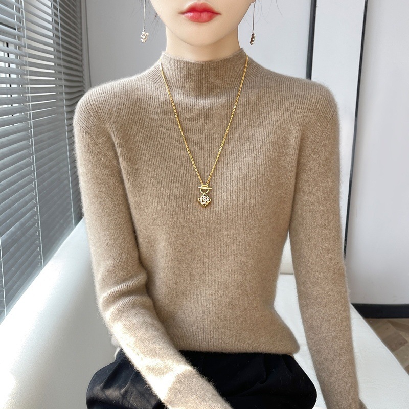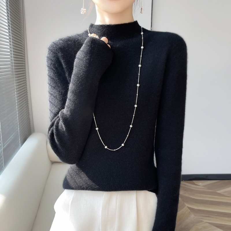 한국 스타일 소프트 왁스 니트 스웨터 여성의 2025 가을 겨울 솔리드 컬러 따뜻한 내부 스웨터 수직 칼라 타이트 서양식 베이스 셔츠스토어 가기