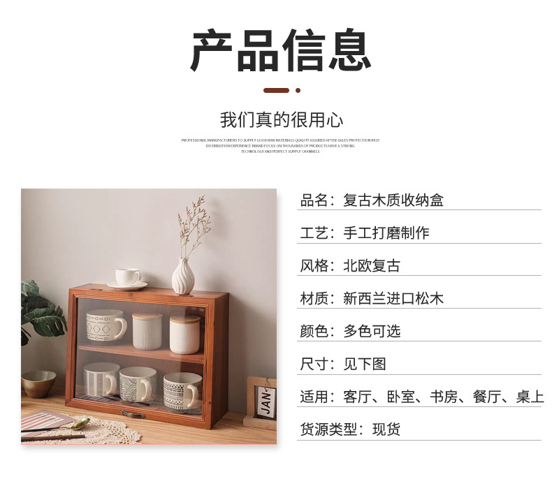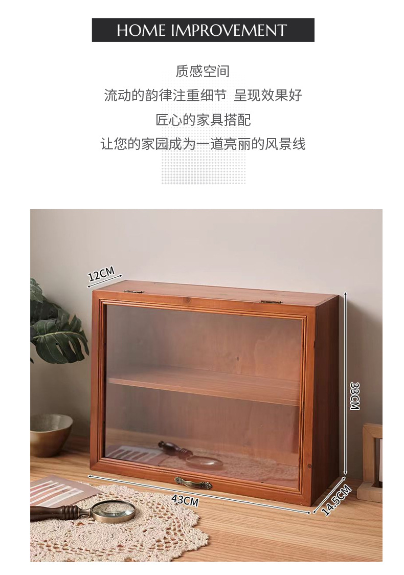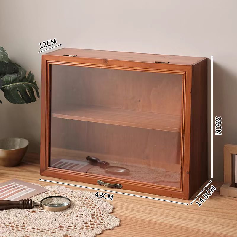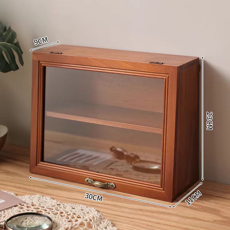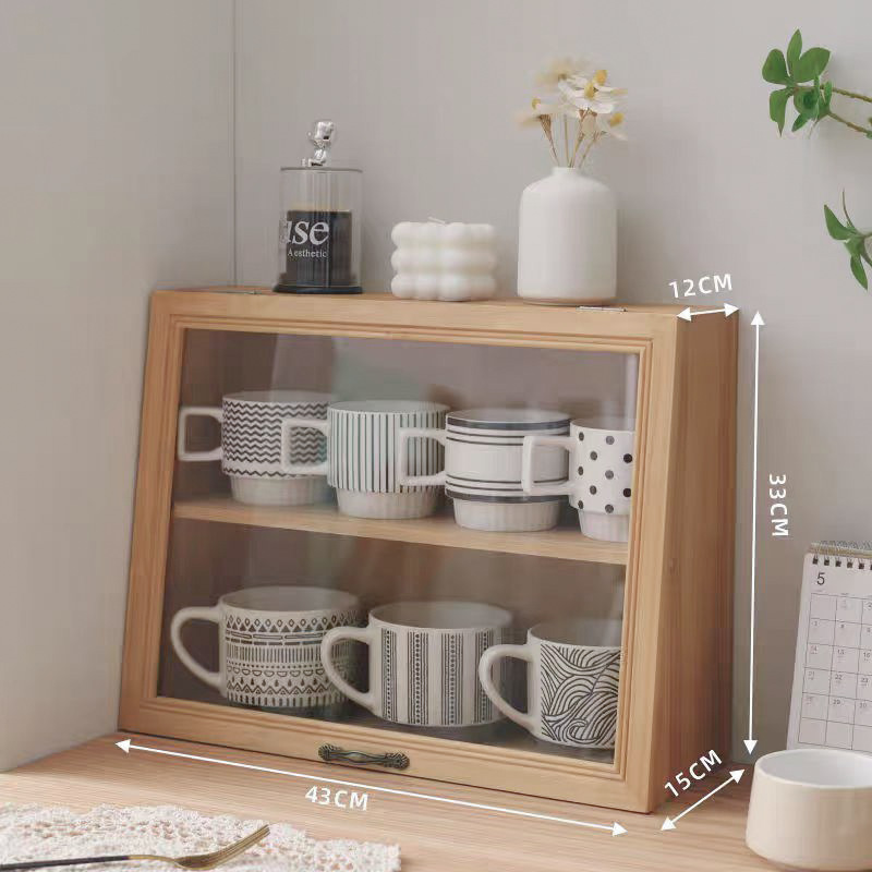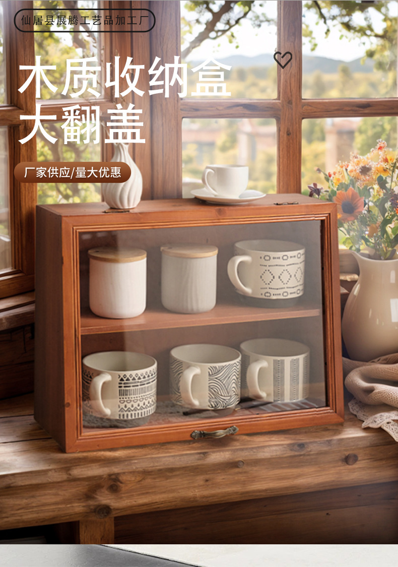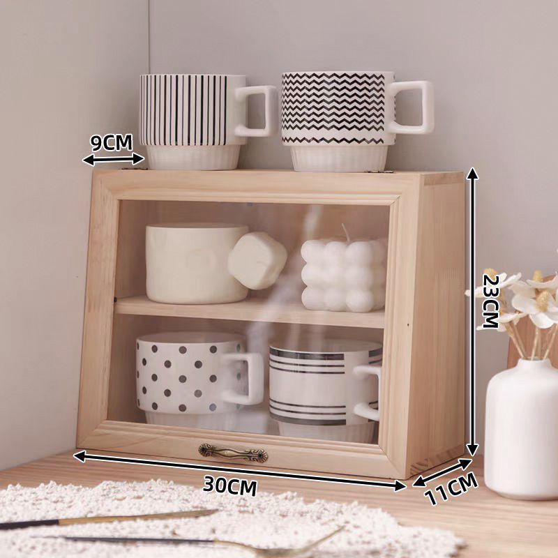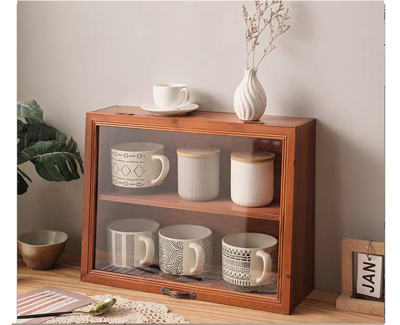 데스크탑 커피 컵 저장 상자 찻잔 차 세트 디스플레이 캐비닛 단단한 나무 물 컵 화장품 품목 뚜껑이 달린 빈티지스토어 가기