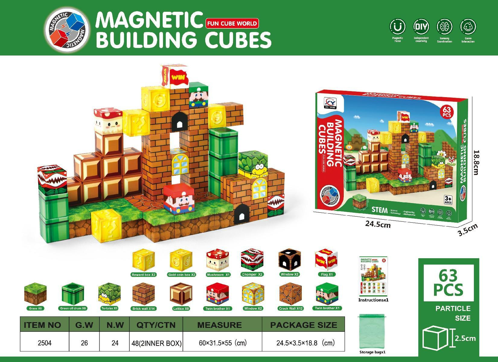 • 2.5CM-자석 큐브 빌딩 블록-황생 형제 게임 테마-63PCS
