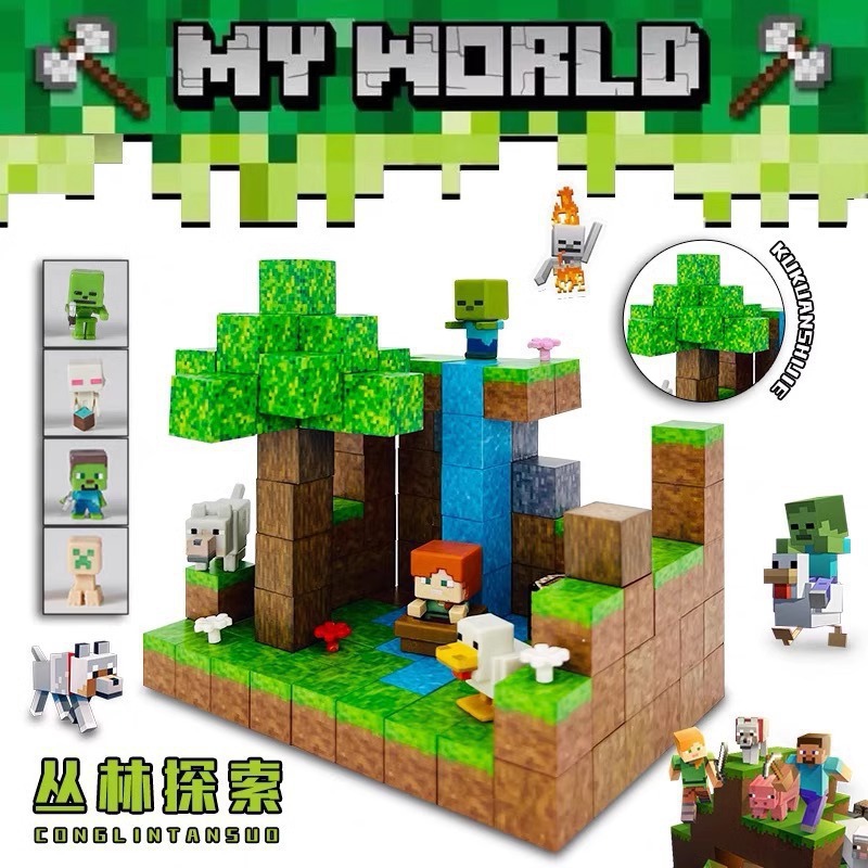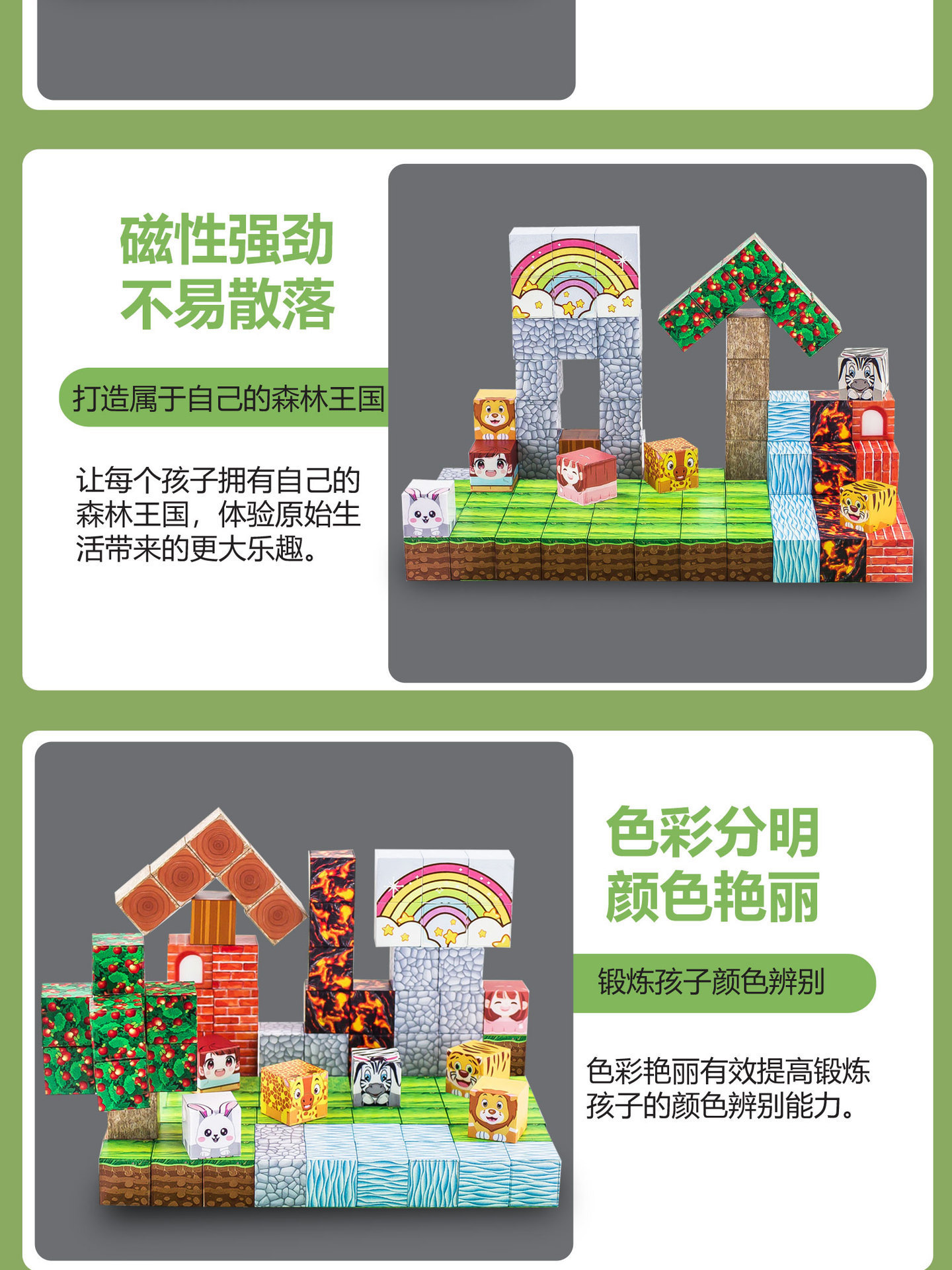 • 2.5CM-자기 사각형 빌딩 블록-정글 건축 장면 테마-54PCS