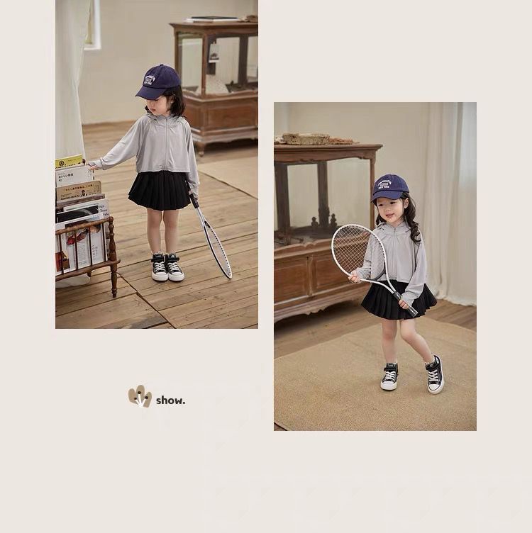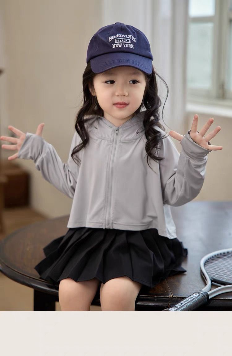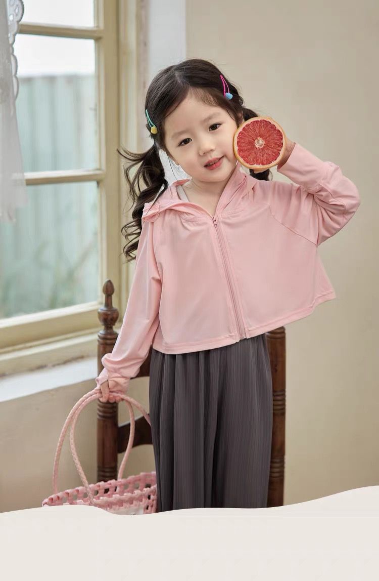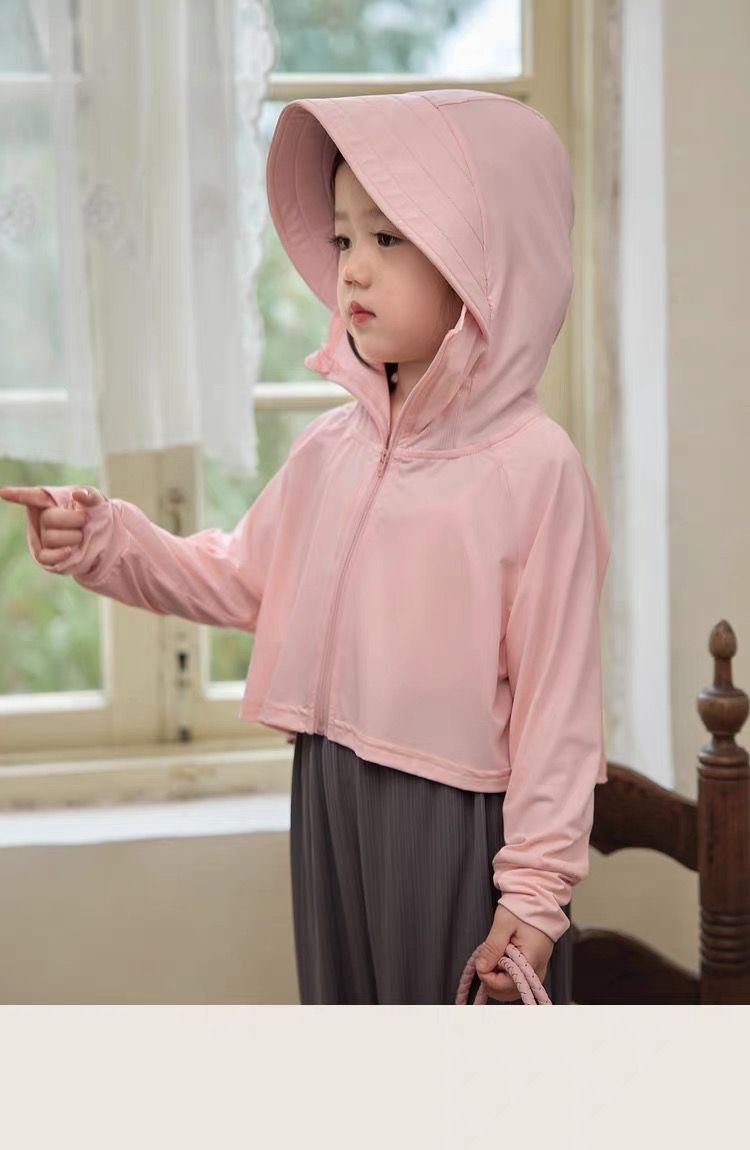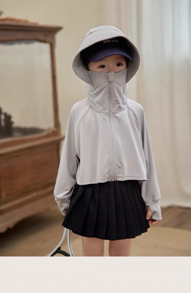 2024 여름 새로운 아기 소녀 긴 소매 태양 보호 의류 유치원 어린이 UV 후드 피부 의류 야외스토어 가기