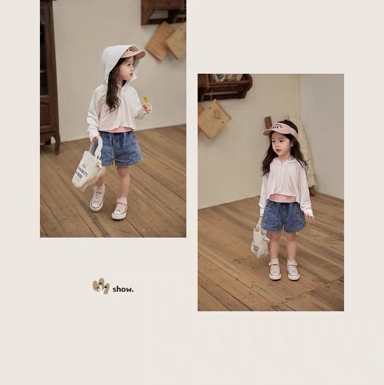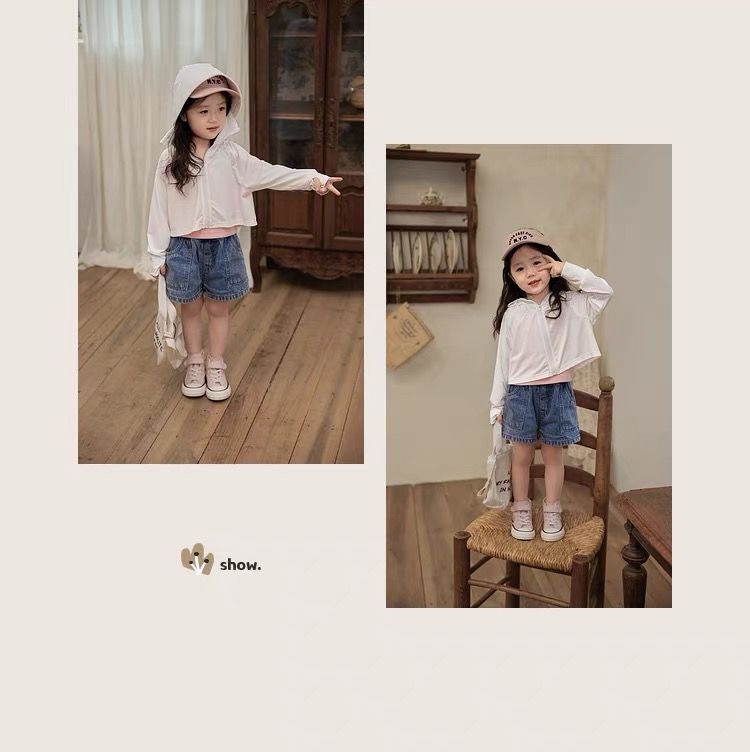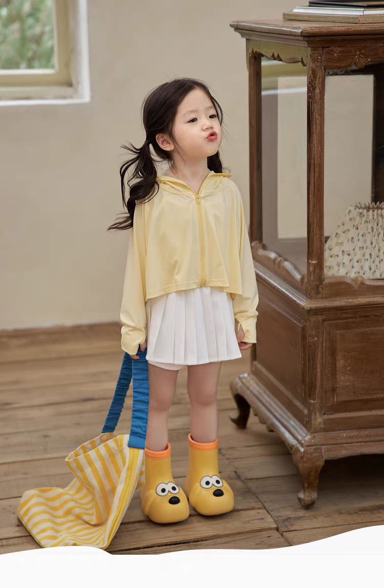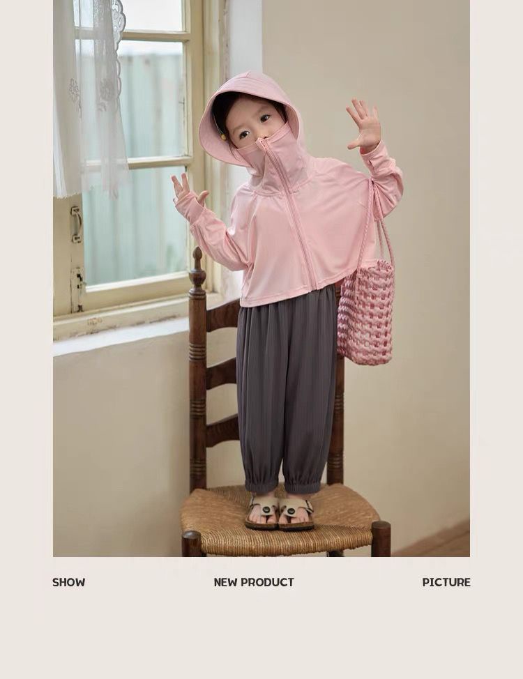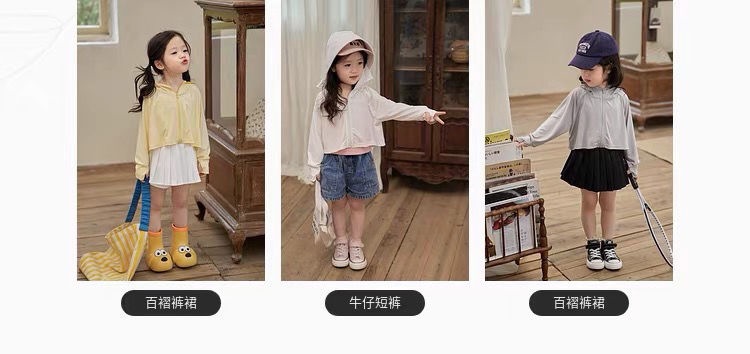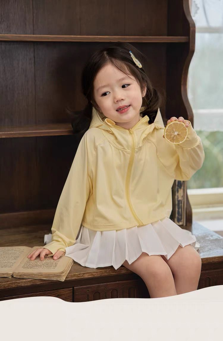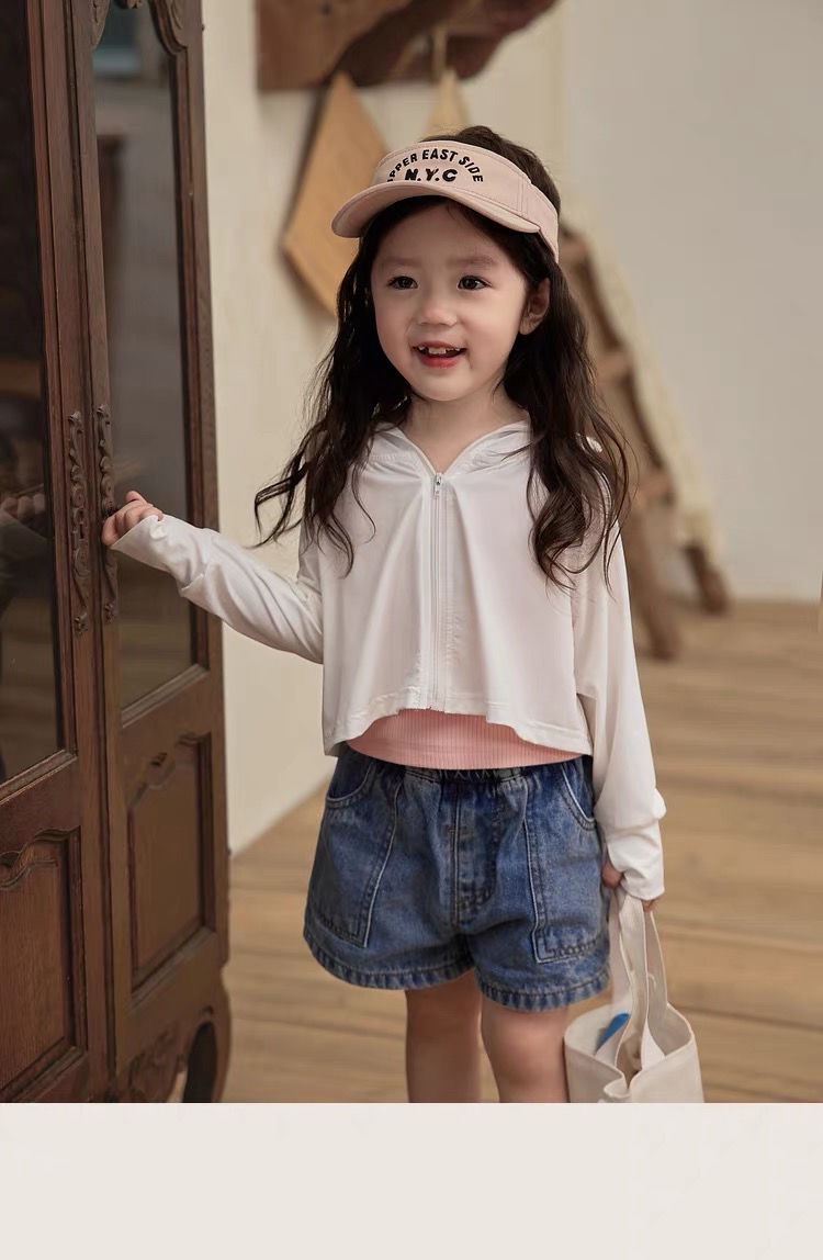 2024 여름 새로운 아기 소녀 긴 소매 태양 보호 의류 유치원 어린이 UV 후드 피부 의류 야외스토어 가기