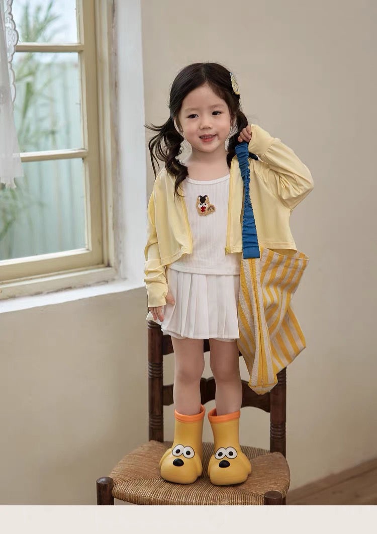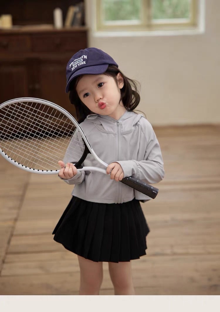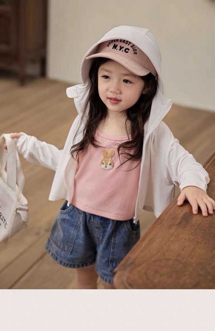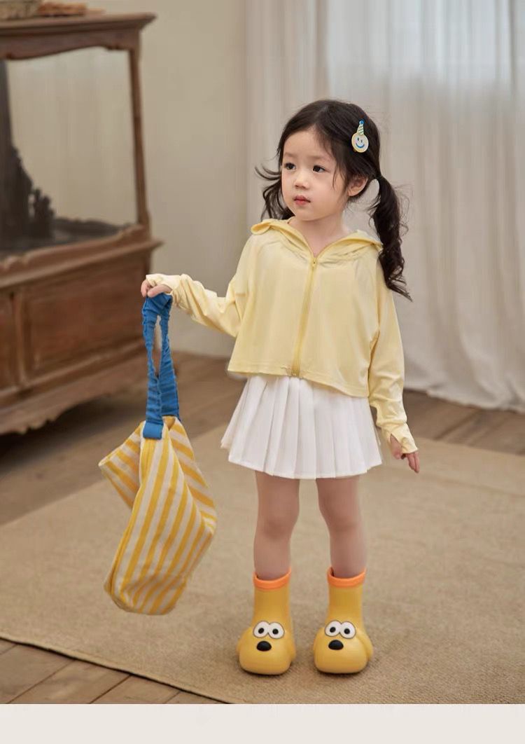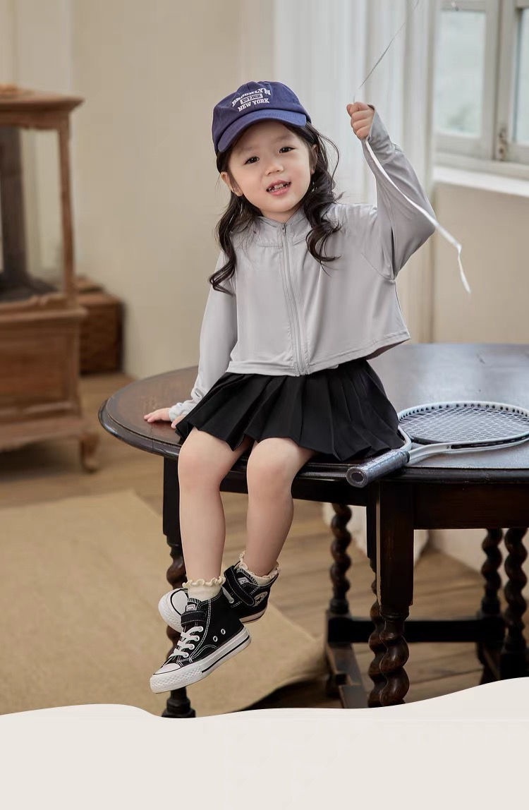 2024 여름 새로운 아기 소녀 긴 소매 태양 보호 의류 유치원 어린이 UV 후드 피부 의류 야외스토어 가기