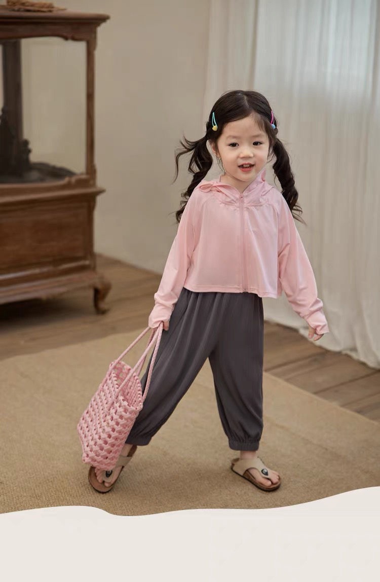 2024 여름 새로운 아기 소녀 긴 소매 태양 보호 의류 유치원 어린이 UV 후드 피부 의류 야외