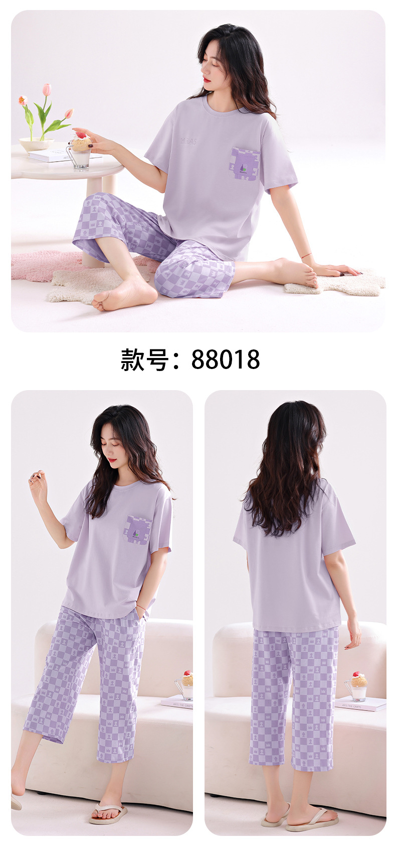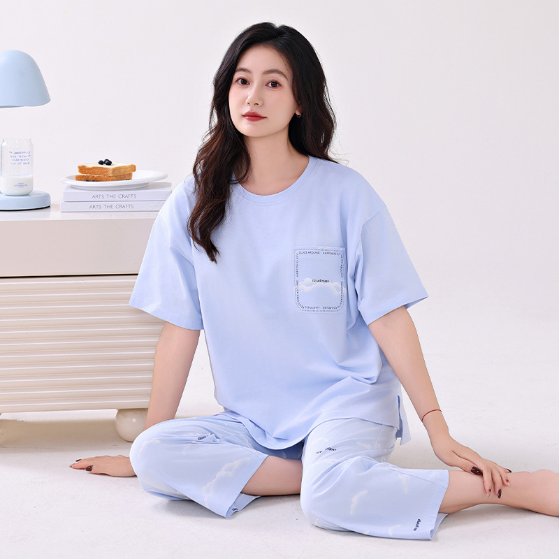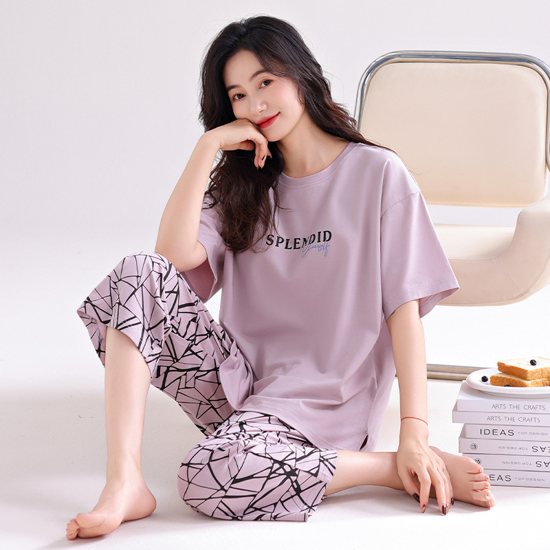 잠옷 여성 여름 2025 새로운 순수면 반팔 카프리 바지 얇은 여름 여성 홈 의류 세트 입고 외부스토어 가기