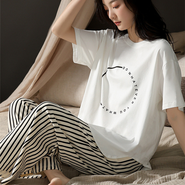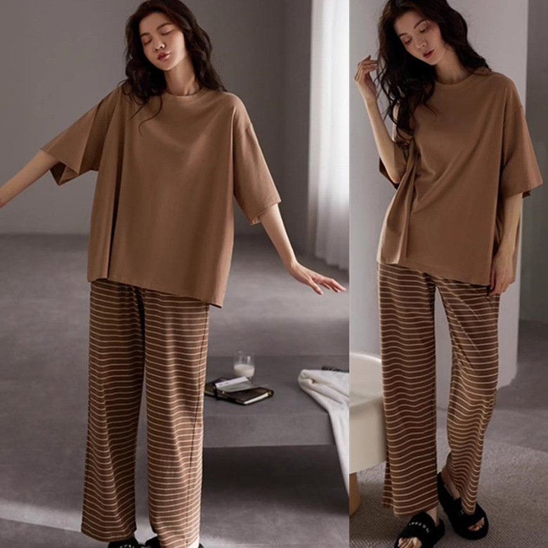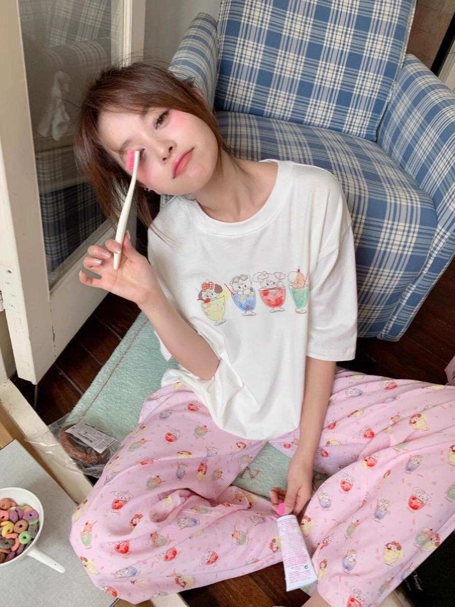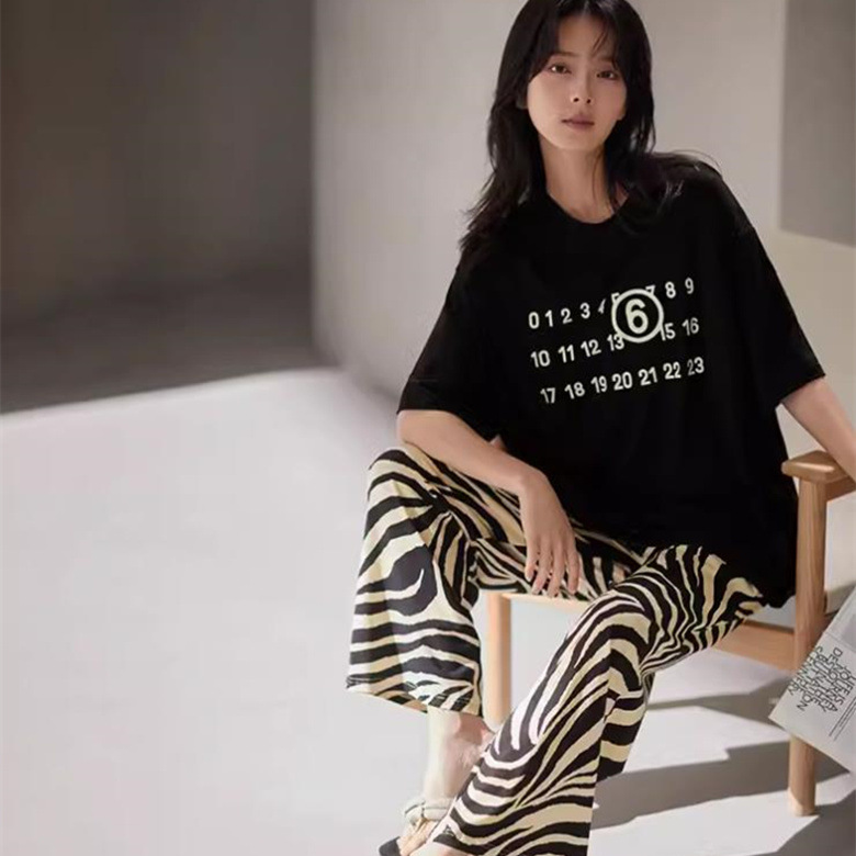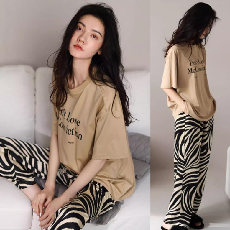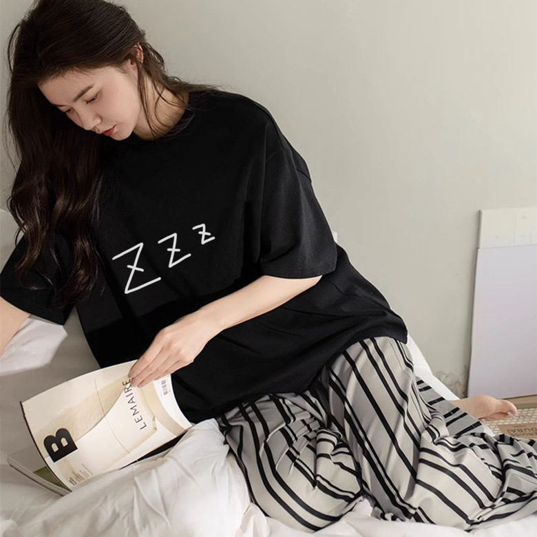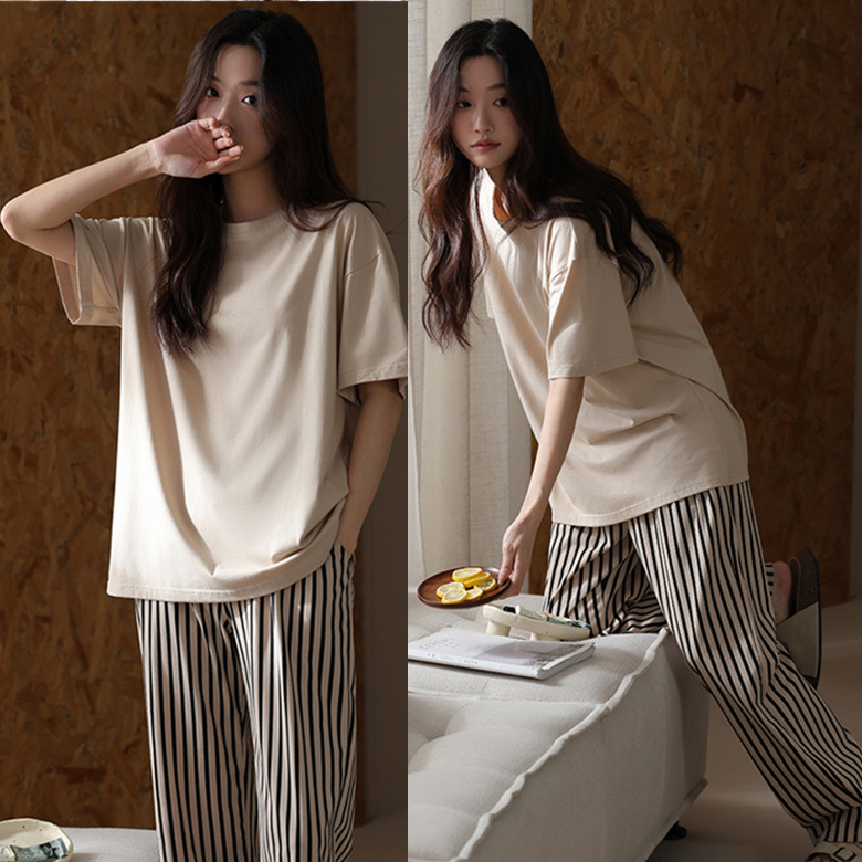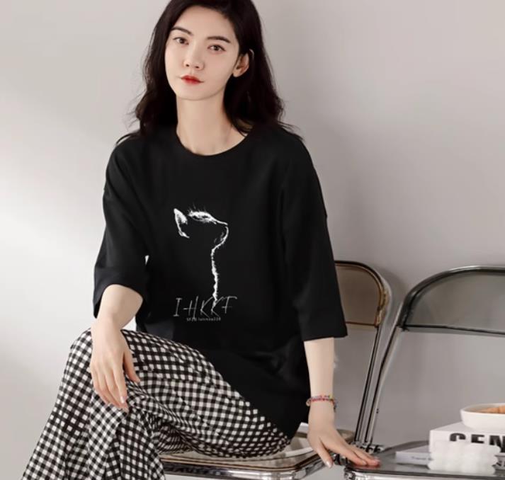 대외 무역 2025 새로운 스타일 잠옷 여성 반팔 바지 느슨한 만화 캐주얼 간단한 체크 무늬 세트 홈 옷스토어 가기
