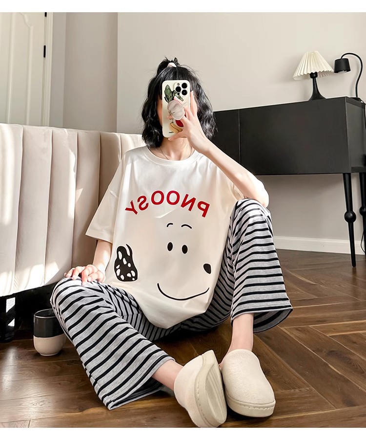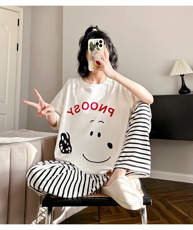 • 흰색 스누피 흰색 줄무늬 바지 짧고 길다