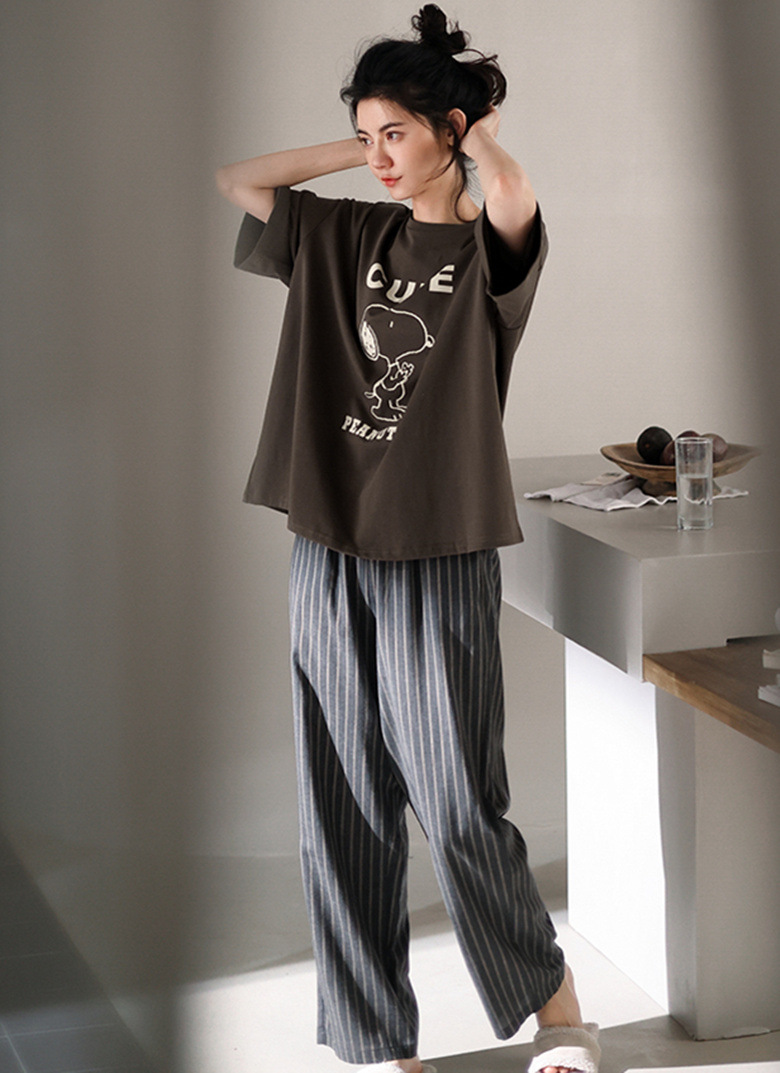 • 다크 그레이와 화이트 스누피 다크 그레이 스트레이트 팬츠 쇼트 롱