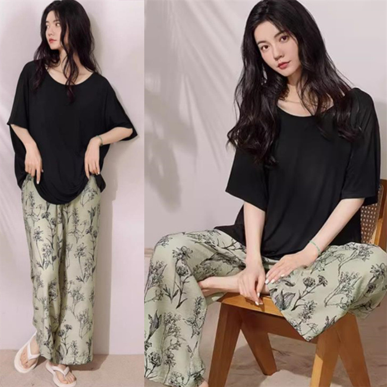 • 순수한 검은색 옷과 녹색 꽃무늬 바지가 짧고 길다
