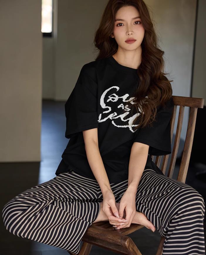 • 흑백 레터 스트라이프 팬츠 쇼트 및 롱