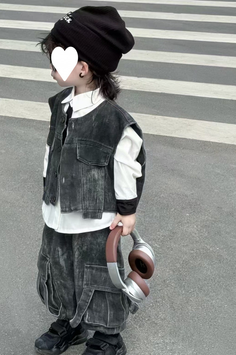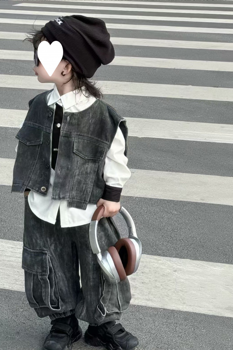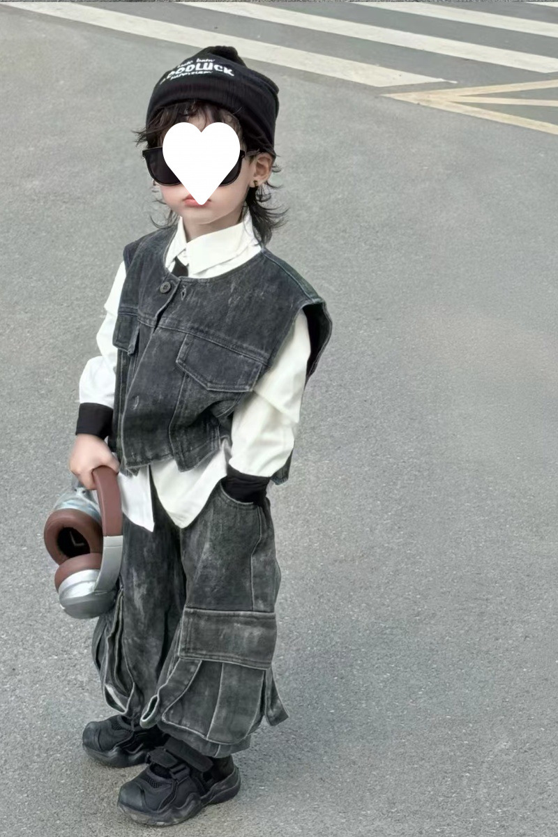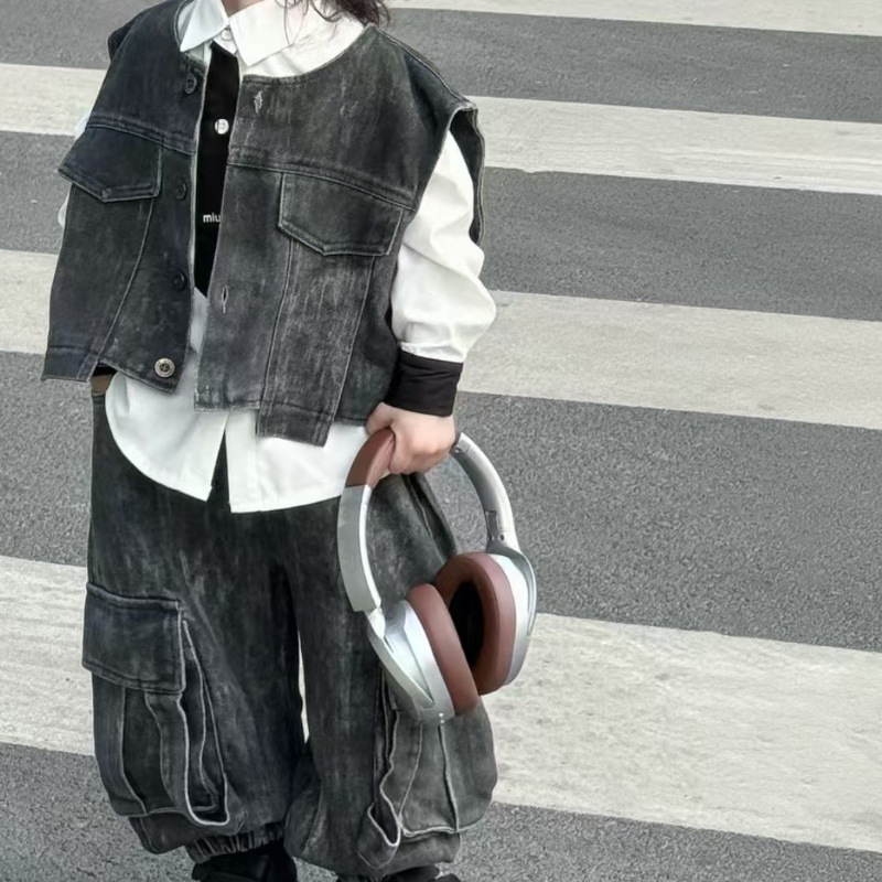 [1239 컬렉션] 중공업 3 조각 한국 데님 조끼 세트 봄 · 가을 잘 생긴 아이들 2025 가을