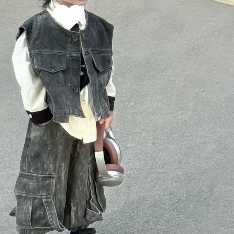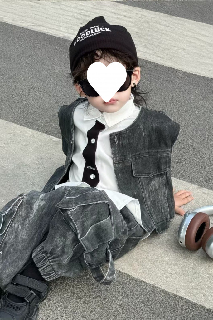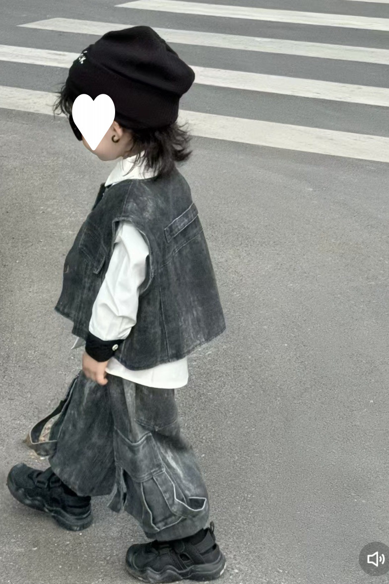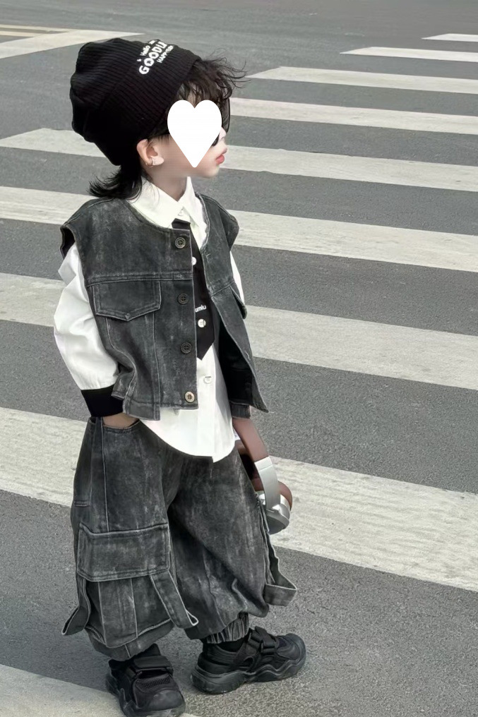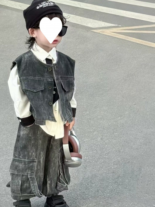 [1239 컬렉션] 중공업 3 조각 한국 데님 조끼 세트 봄 · 가을 잘 생긴 아이들 2025 가을