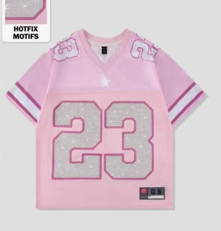 줄무늬 트림 V-Neck 느슨한 티셔츠 여성 유럽과 미국의 스포츠 로스 앵글 인쇄 탑스토어 가기