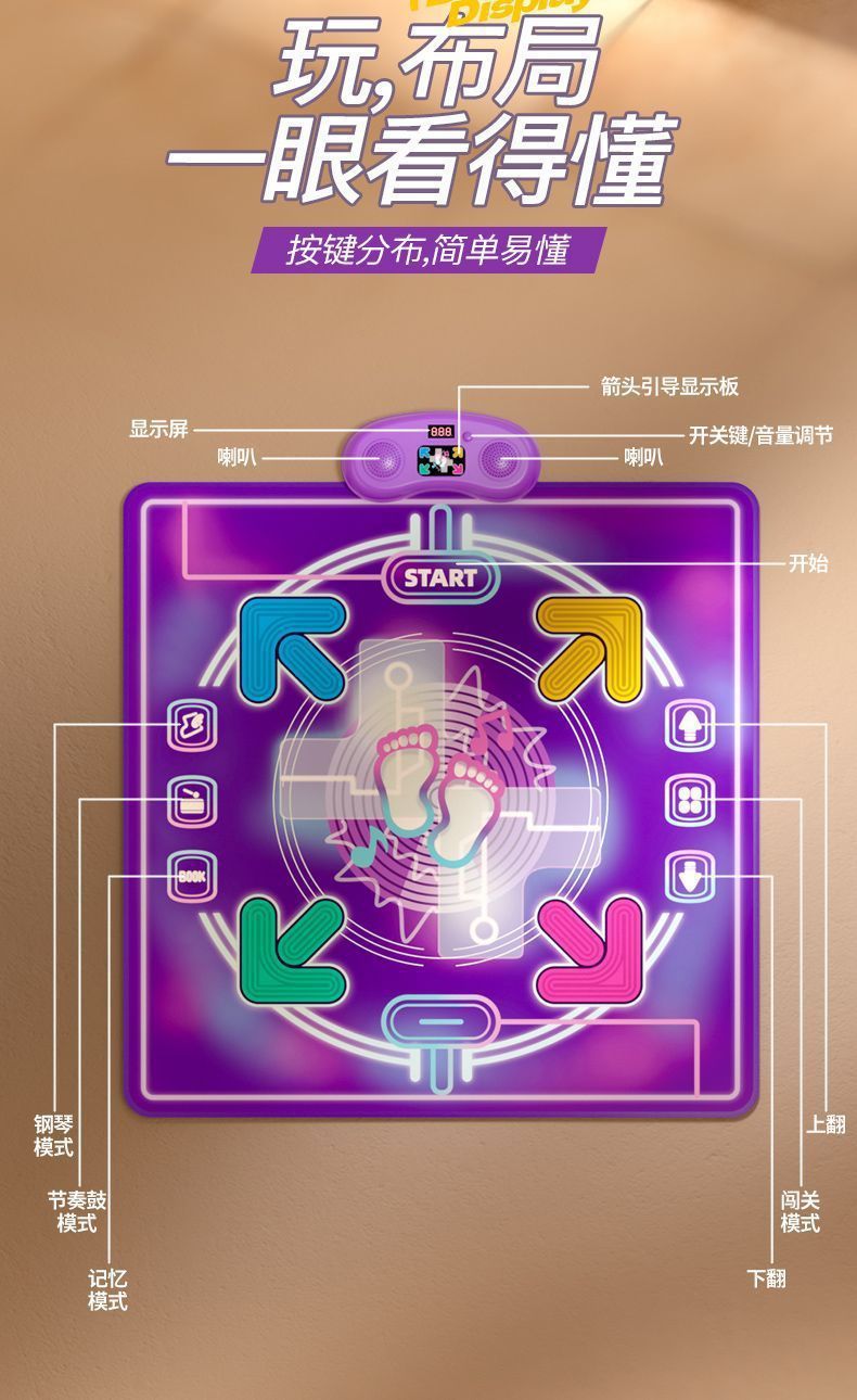 음악 춤 담요 어린이 스포츠 피트니스 동적 입장 게임 점프 담요 매트 없음 TV 필요 없음스토어 가기