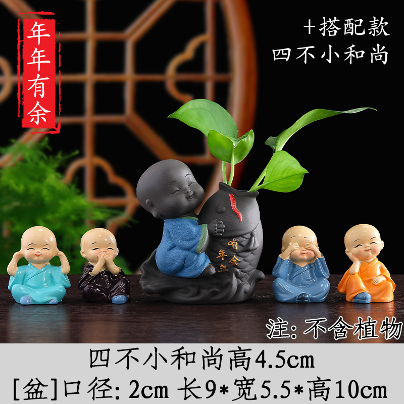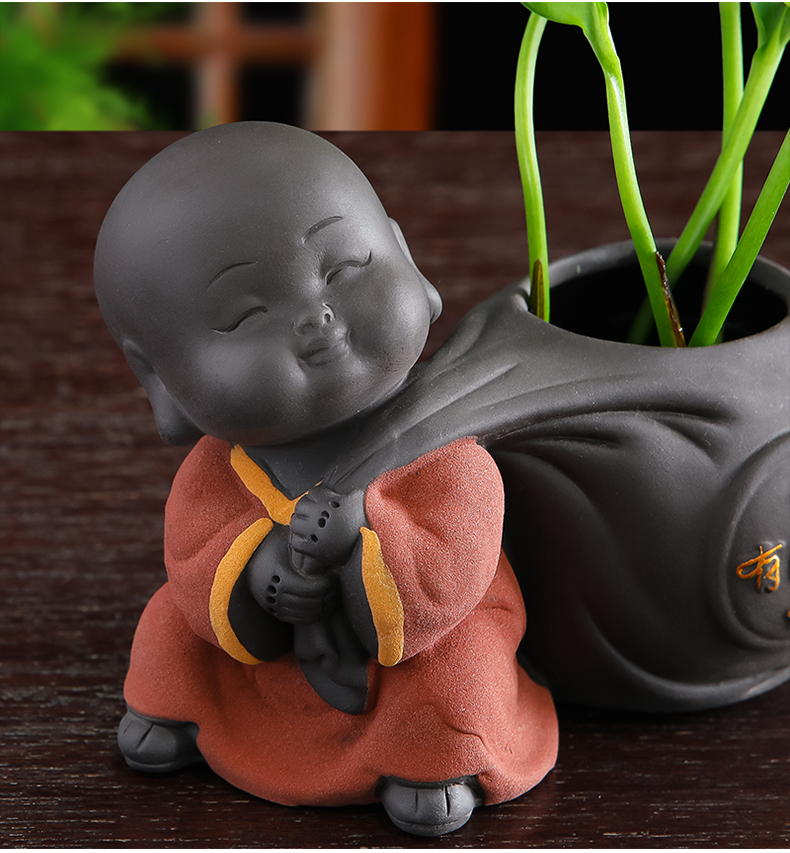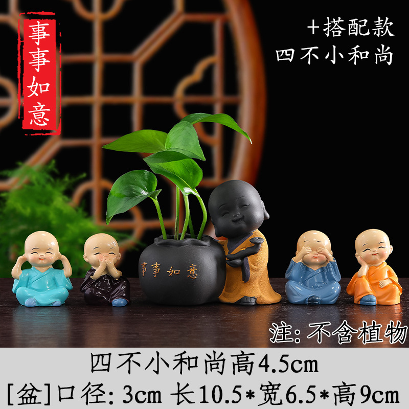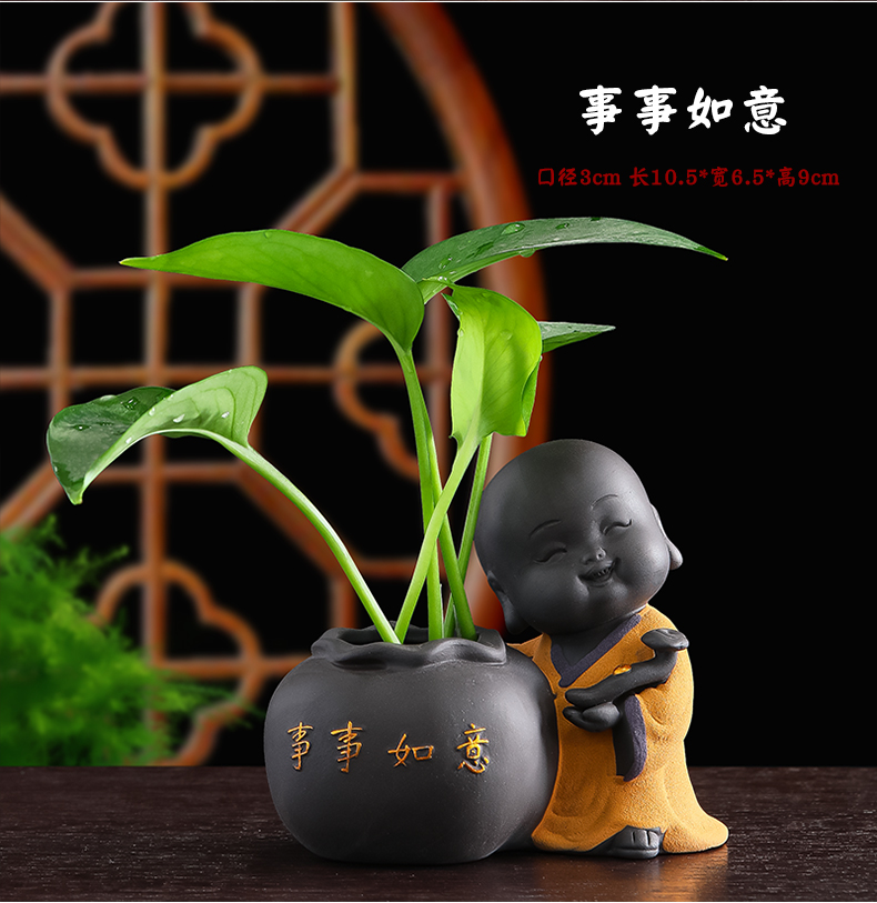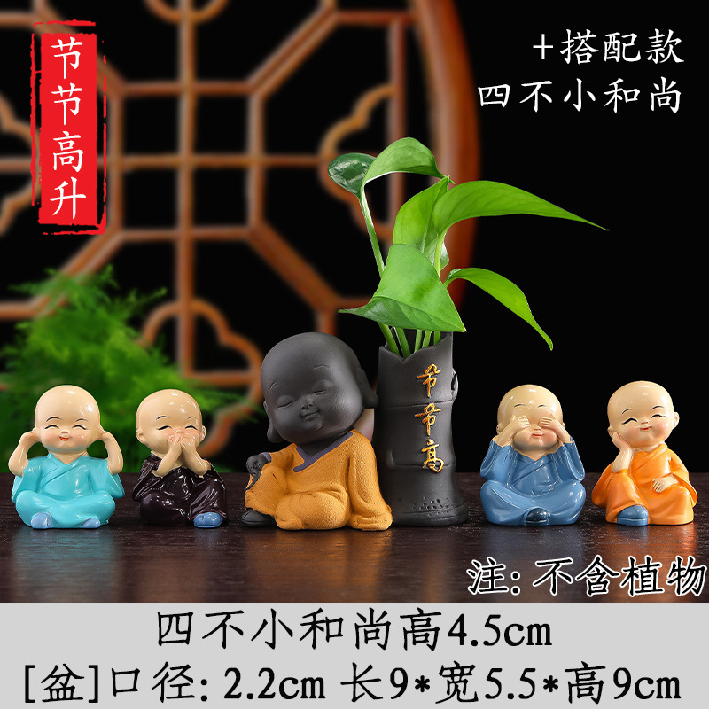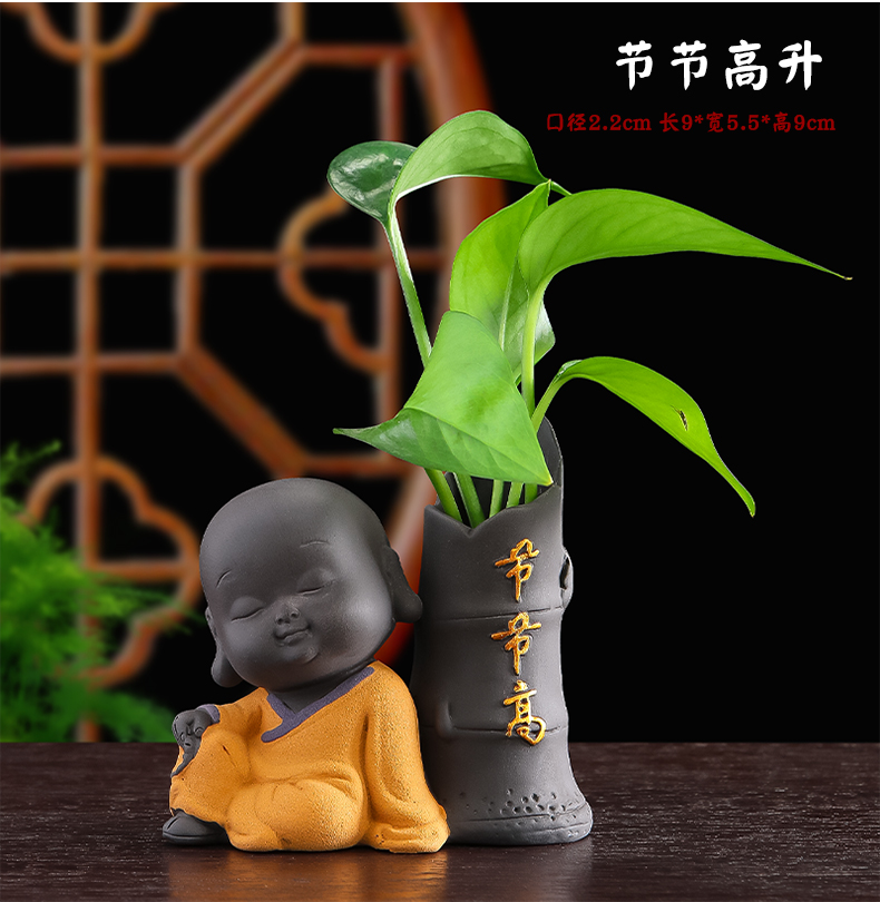 Tiantai Hualian 보라색 점토 스님 수경 꽃 세트 차 테이블 장식 차 애완 동물 작은 장식품 창조적 인 꽃병 아쿠아 식물