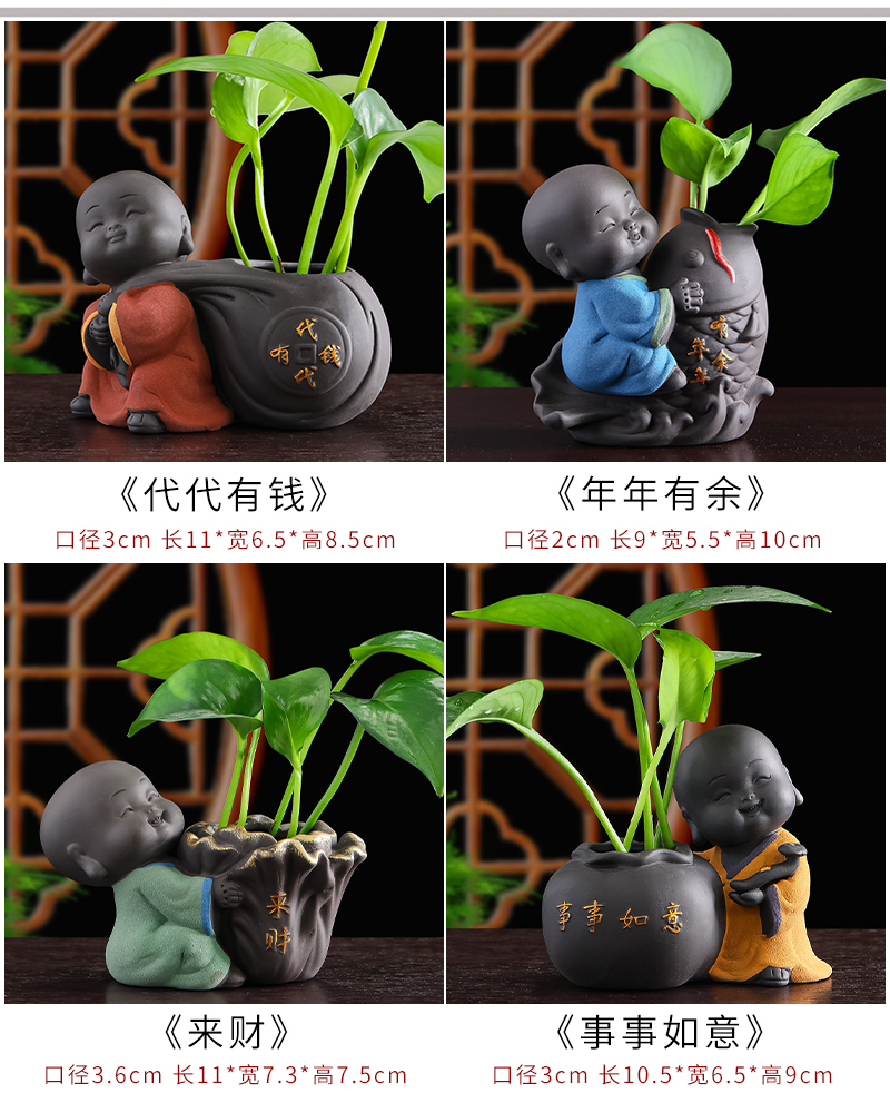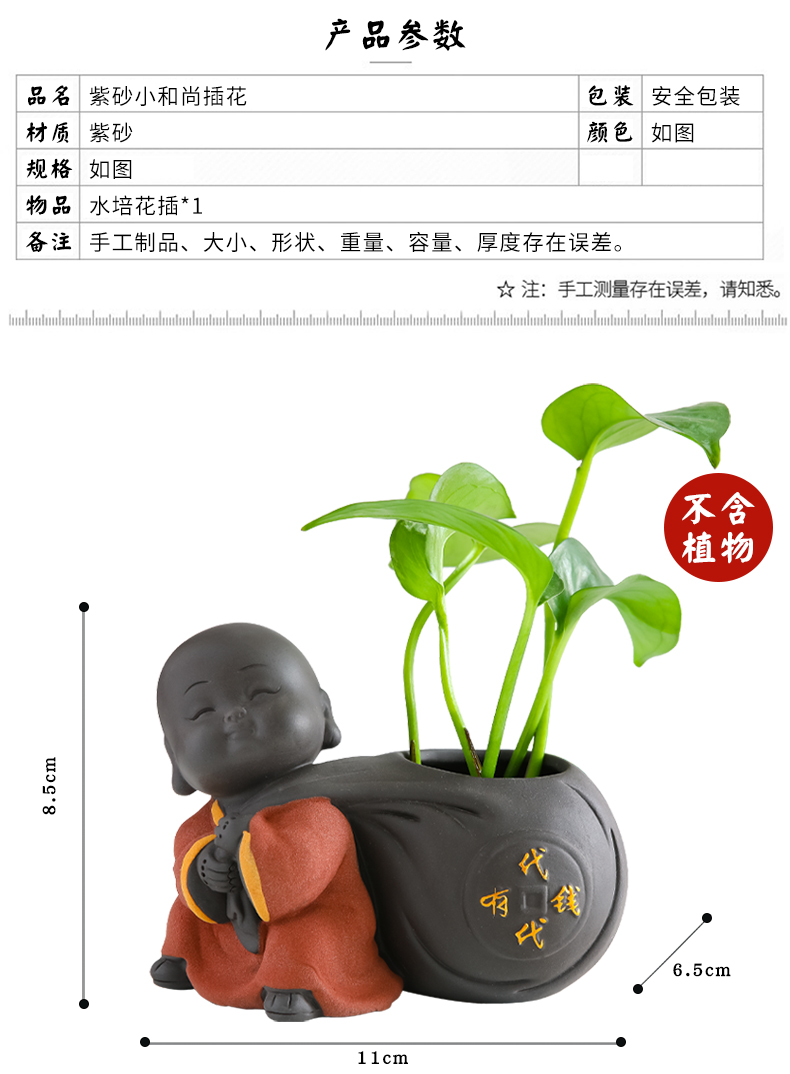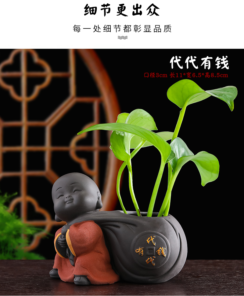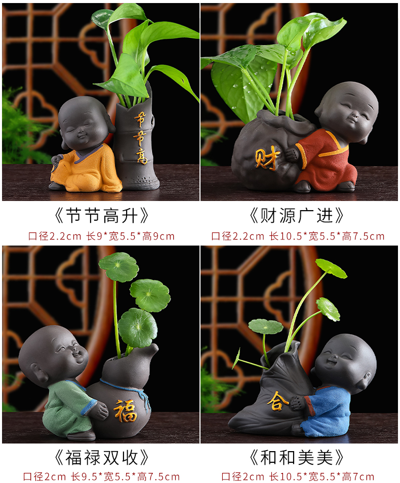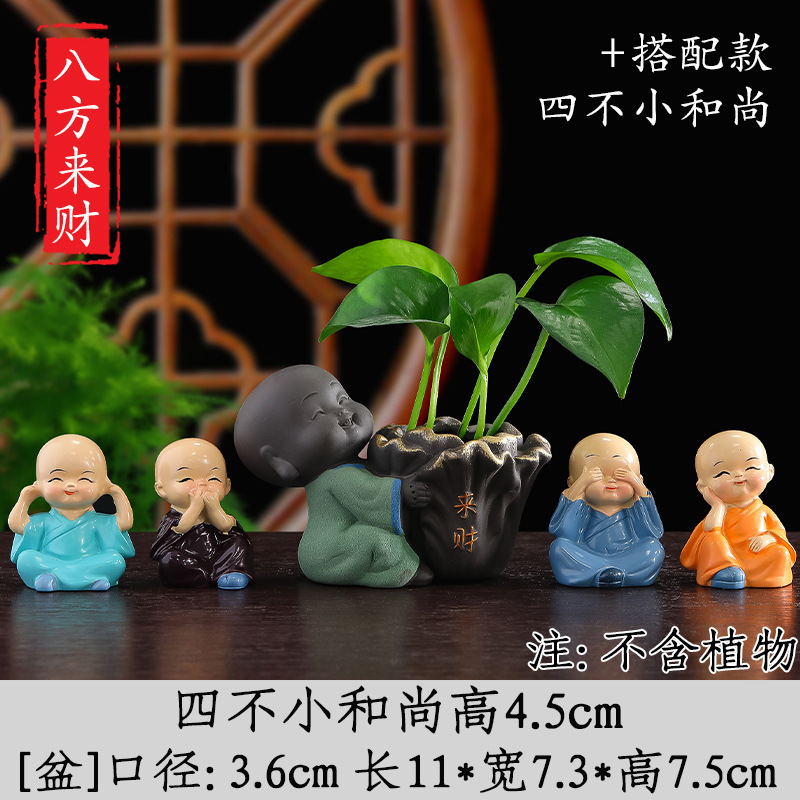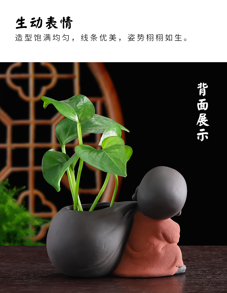 Tiantai Hualian 보라색 점토 스님 수경 꽃 세트 차 테이블 장식 차 애완 동물 작은 장식품 창조적 인 꽃병 아쿠아 식물