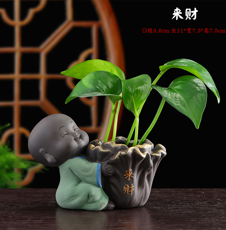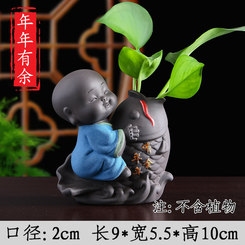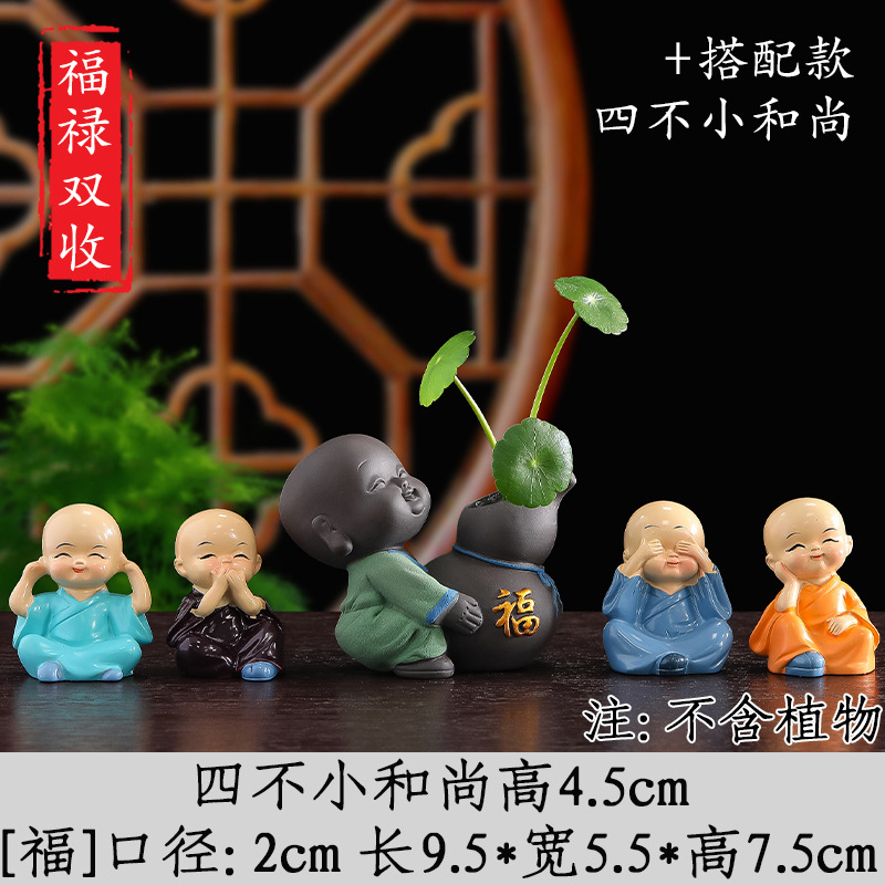 Tiantai Hualian 보라색 점토 스님 수경 꽃 세트 차 테이블 장식 차 애완 동물 작은 장식품 창조적 인 꽃병 아쿠아 식물스토어 가기