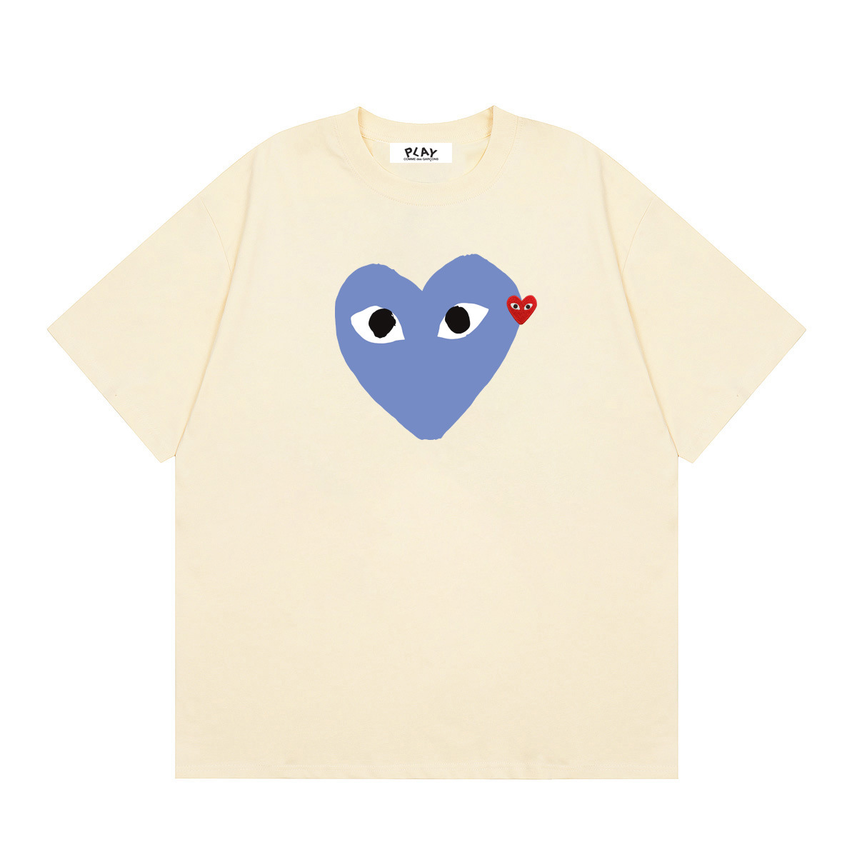 2025 년대 여름 Comme des Garcons 새로운 Kawajiu 연애 편지 인쇄 풀오버 짧은 소매 남성과 여성