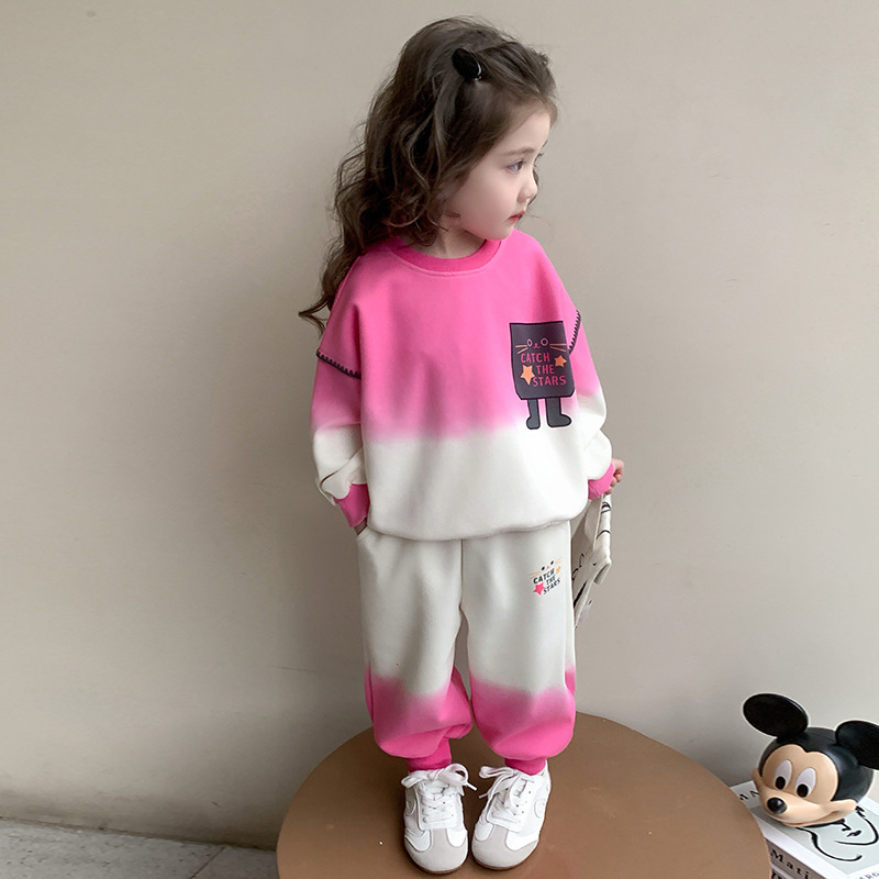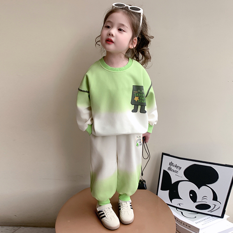 소녀의 봄 옷 세트 2025 새로운 어린이 인터넷 인기 유행 스포츠 아기의 봄과 가을 옷 두 세트