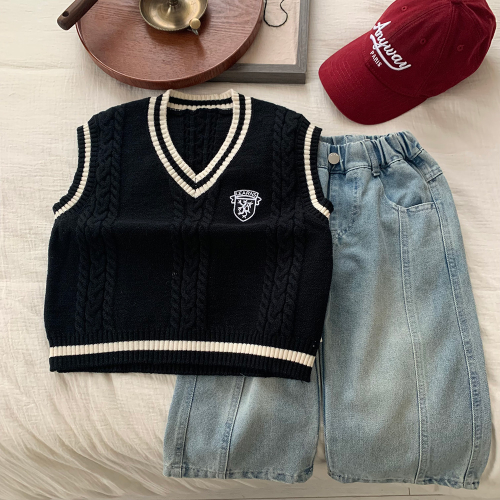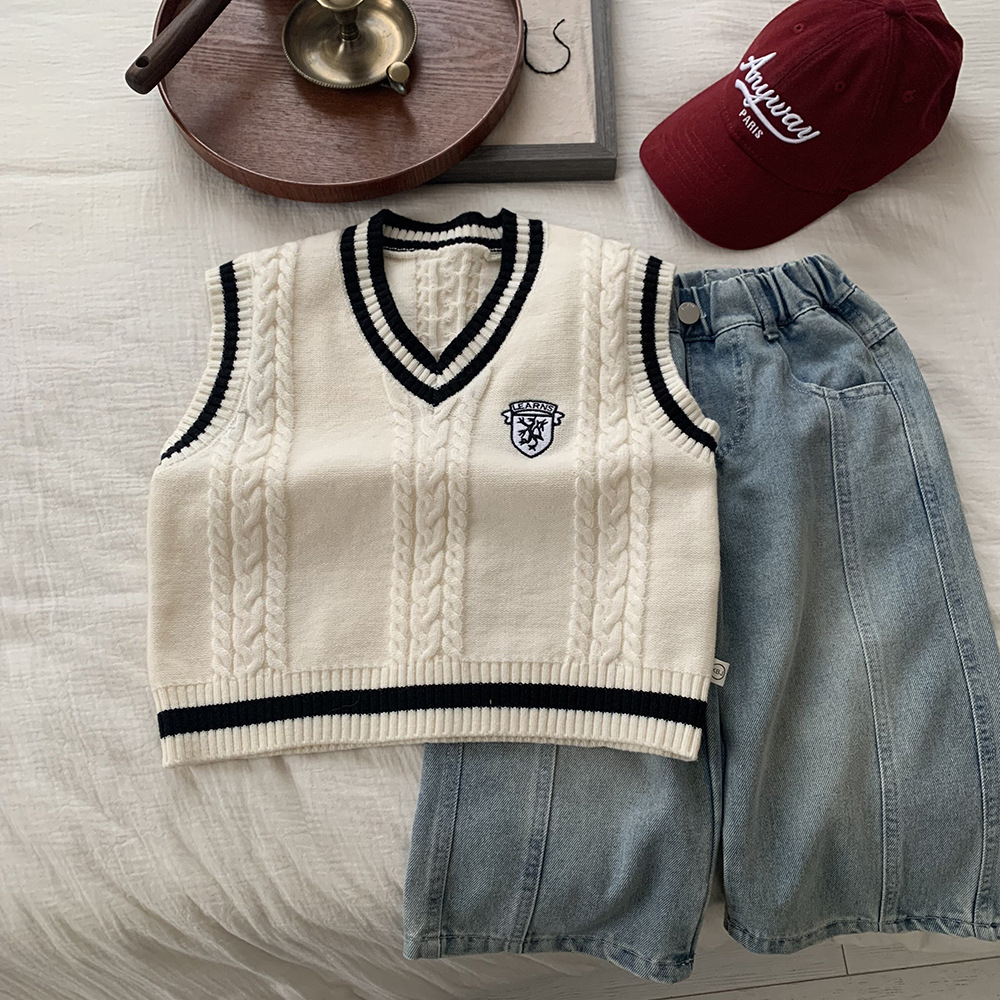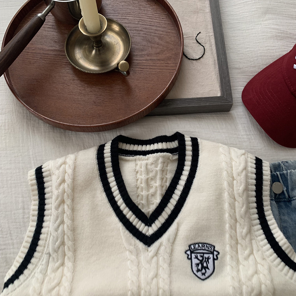 어린이 스웨터 한국 스타일 아기 캐주얼 조끼 2025 봄과 가을 서양식 대학 스타일 톱 소년 스웨터 조끼