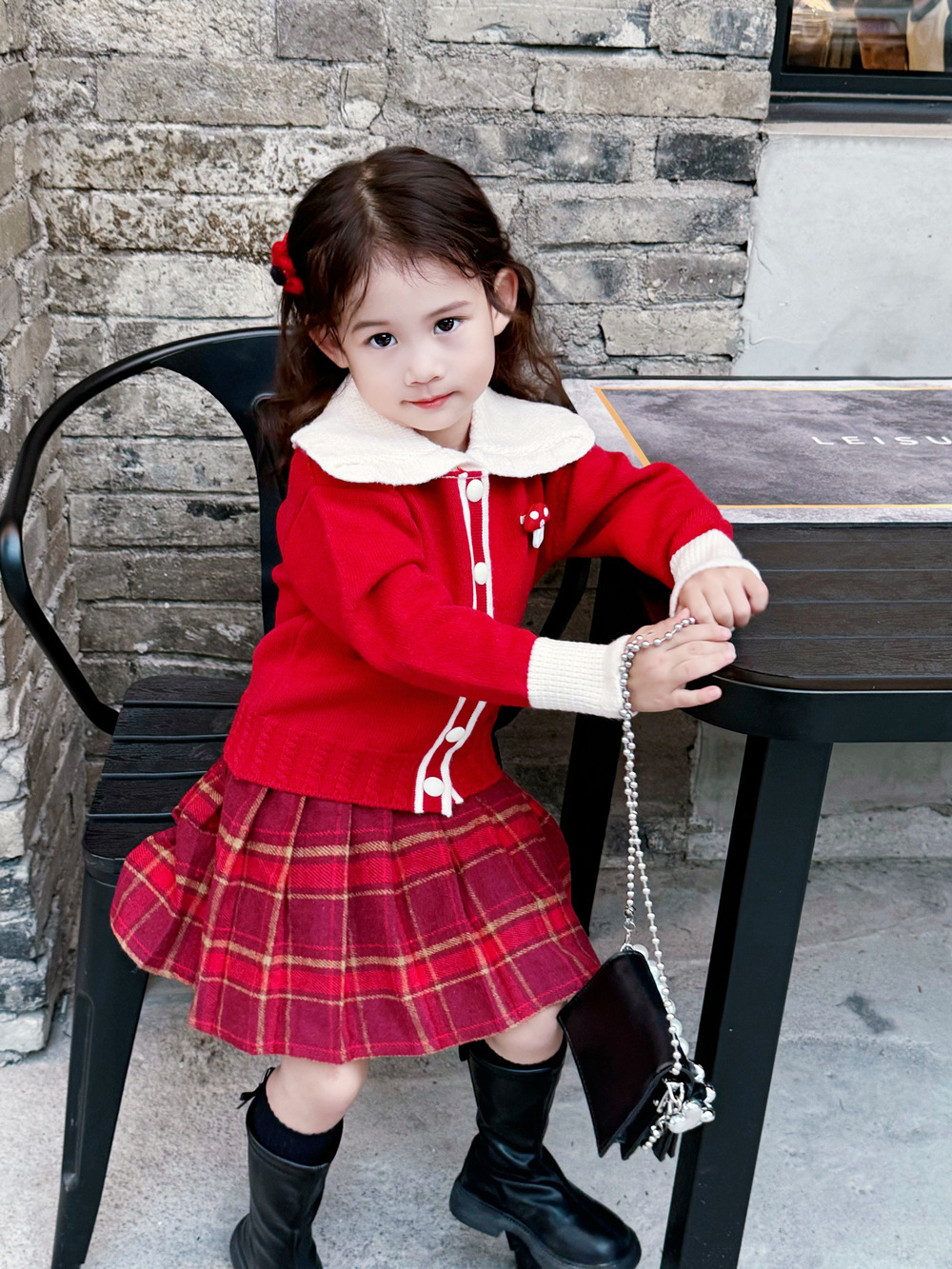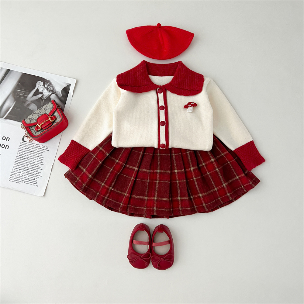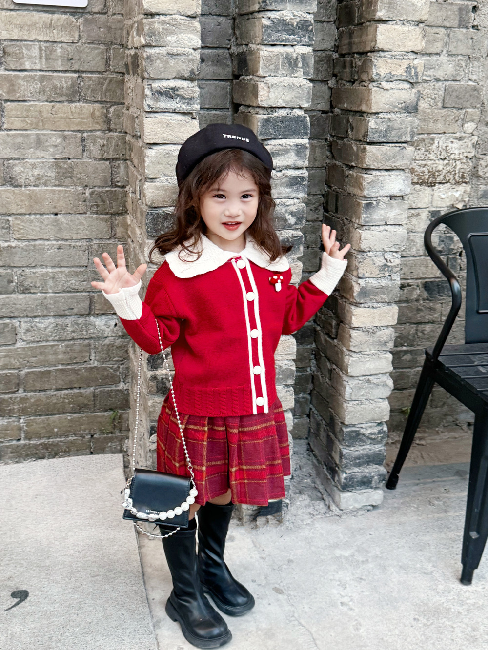 2025 가을과 겨울 새로운 소녀 한국어 버전의 학술 스타일 스웨터 세트 여성 보물 스웨터 카디건 플리츠 스커트 투피스 세트스토어 가기