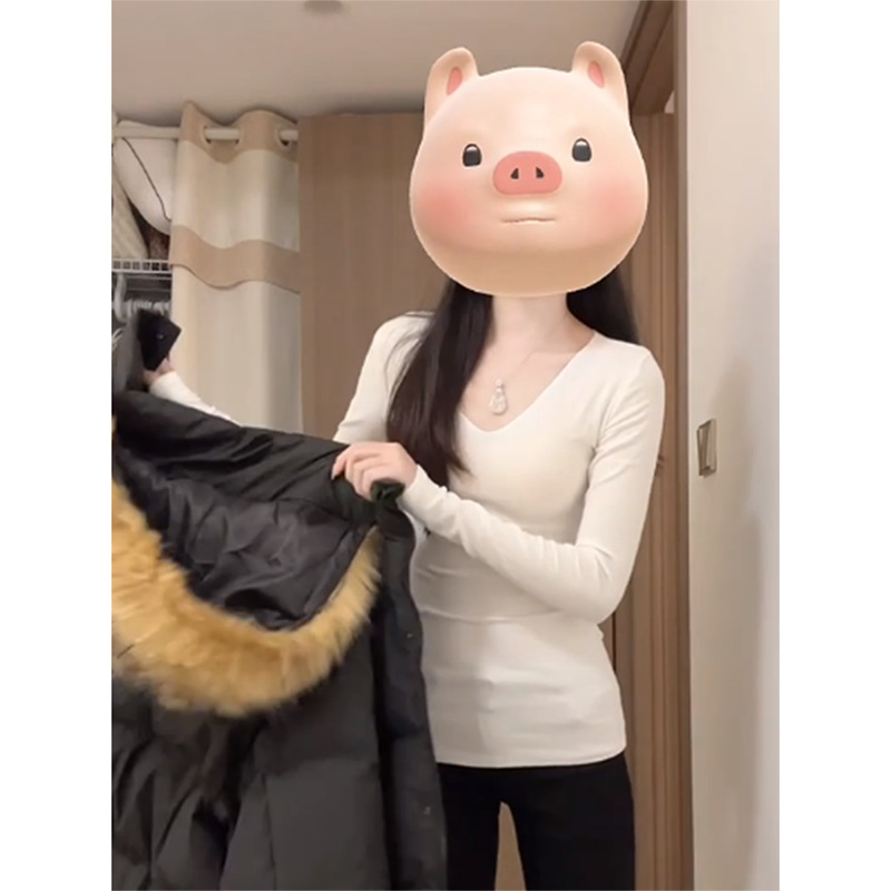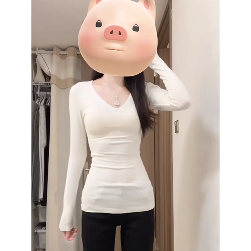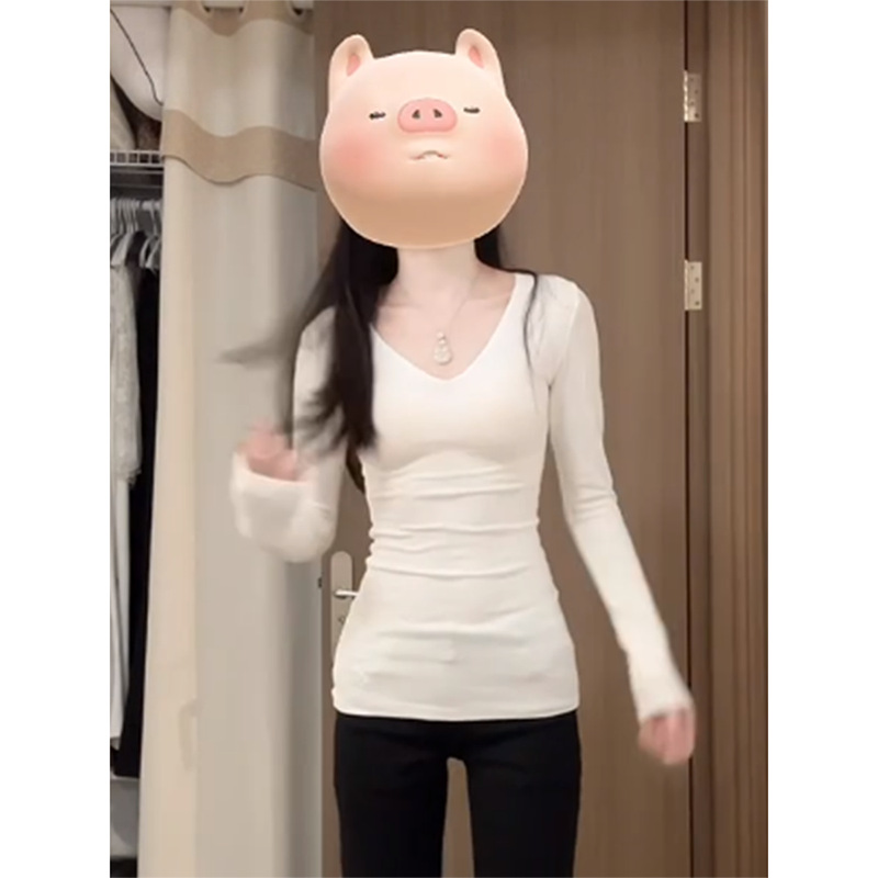 화이트 V 넥 슬림 핏 티셔츠 여성용 2025 새로운 봄 긴 소매 내베이스 셔츠 여성용 최고 봄과 가을 착용스토어 가기