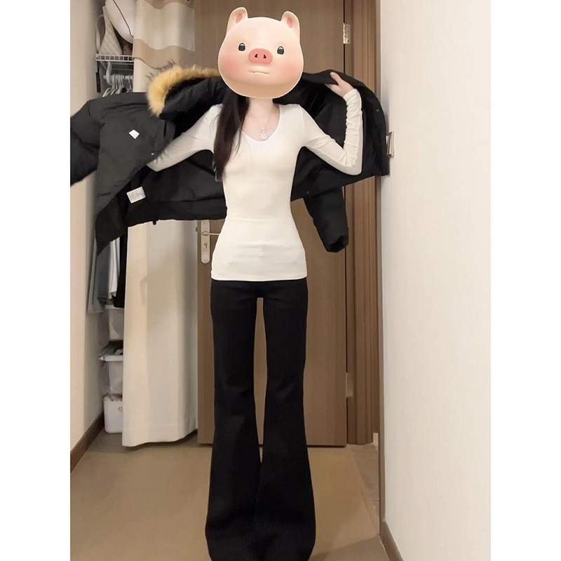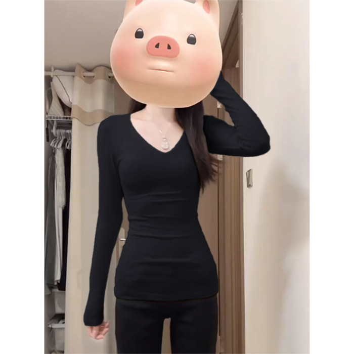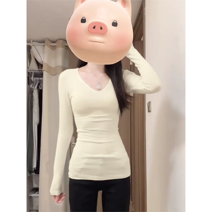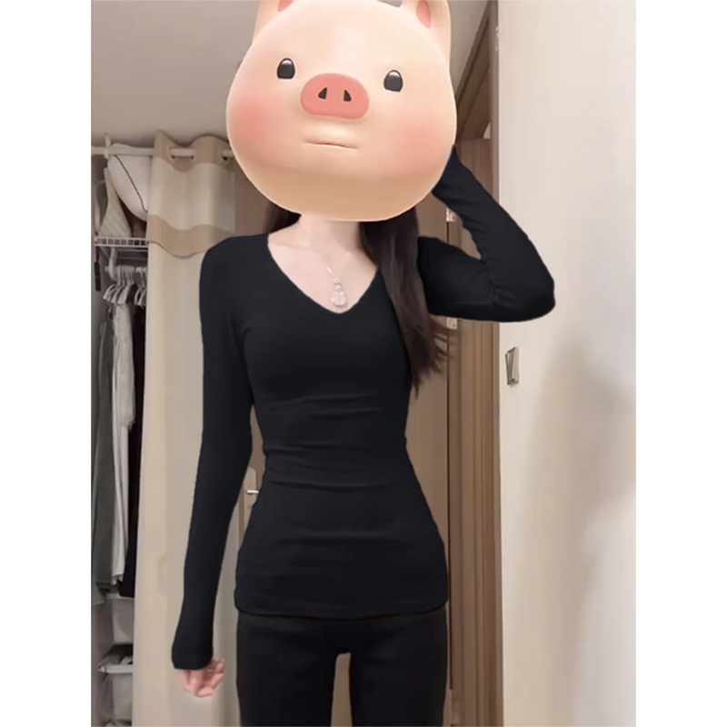 화이트 V 넥 슬림 핏 티셔츠 여성용 2025 새로운 봄 긴 소매 내베이스 셔츠 여성용 최고 봄과 가을 착용