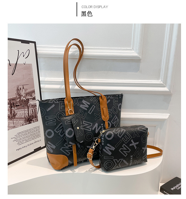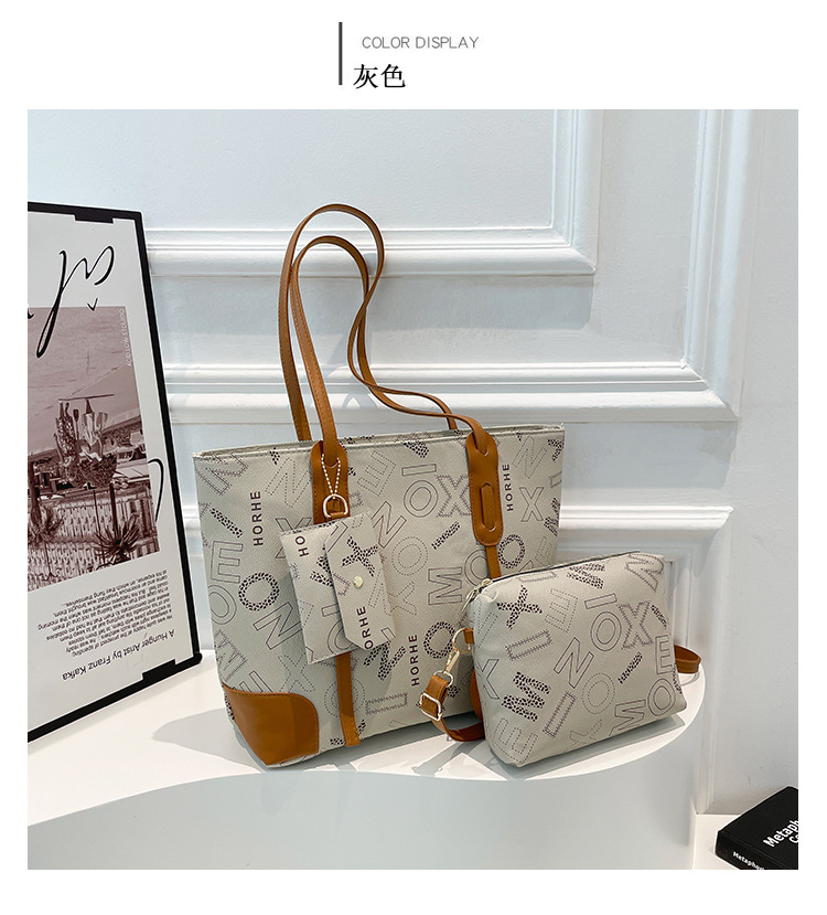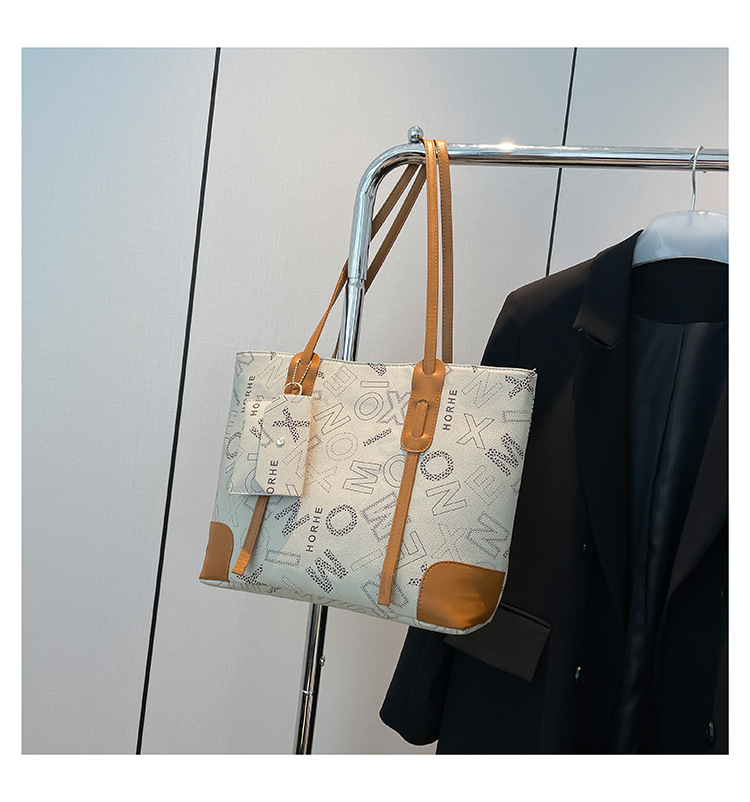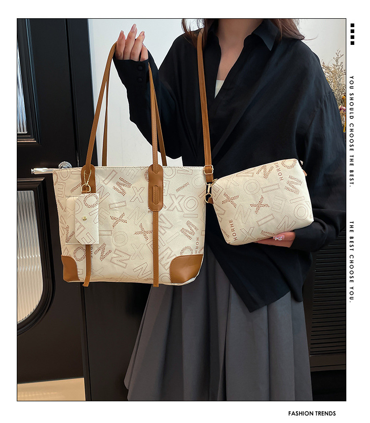 빈티지 편지 3 피스 세트 2025 봄 새로운 도착 대용량 유행 여성용 휴대용 언더암 토트 숄더 백