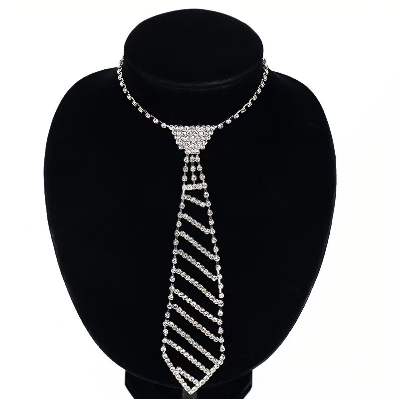 공장 직접 공급 모조 다이아몬드 넥타이 긴 목걸이 여성용 나비 넥타이 패션 다이아몬드 의류 넥타이 목걸이