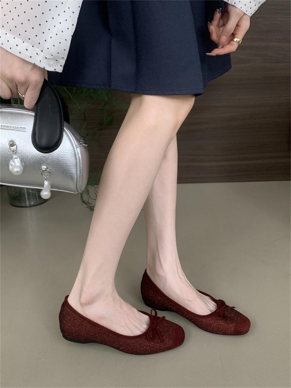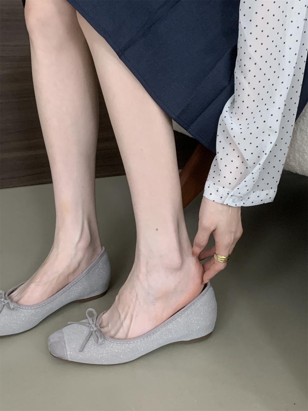 광장 발가락 얕은 입 신발 평평한 봄과 가을 새로운 프랑스 저녁 바람 요정 부드러운 발레 활 완두콩 신발스토어 가기