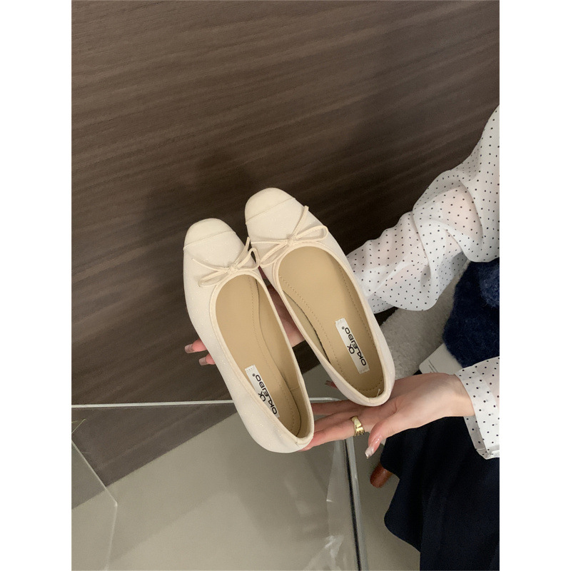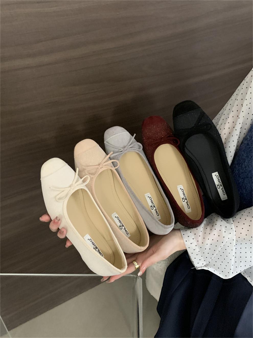 광장 발가락 얕은 입 신발 평평한 봄과 가을 새로운 프랑스 저녁 바람 요정 부드러운 발레 활 완두콩 신발