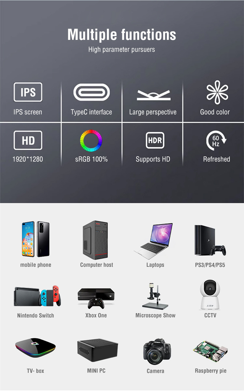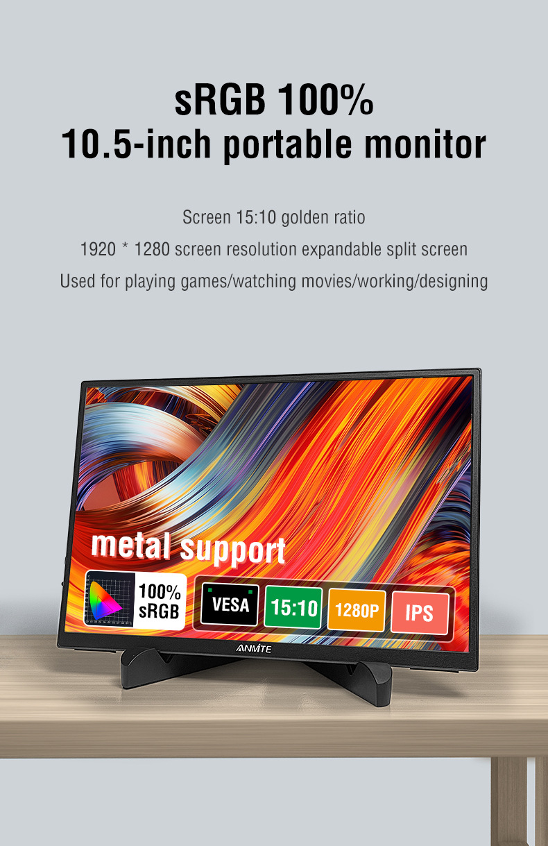 Anmite 10.5inch 휴대용 IPS 스크린 모니터 Nintendo 스위치 컴퓨터 외부 확장 화면