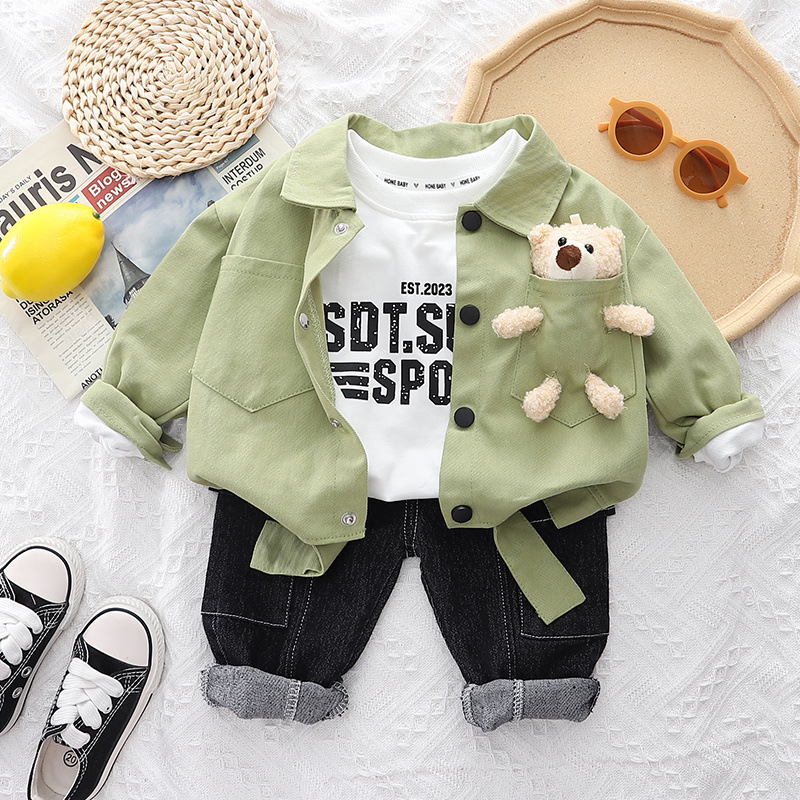 소년 가을 의류 세트 2025 새로운 어린이 유아 잘 생긴 봄과 가을 소년의 귀여운 3 조각 유행 옷스토어 가기