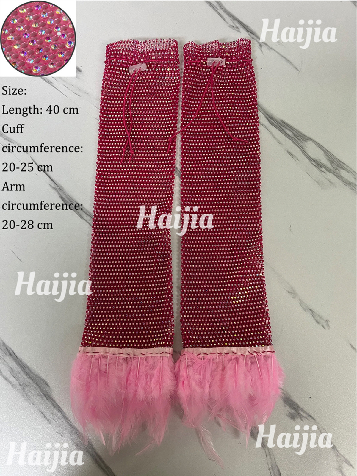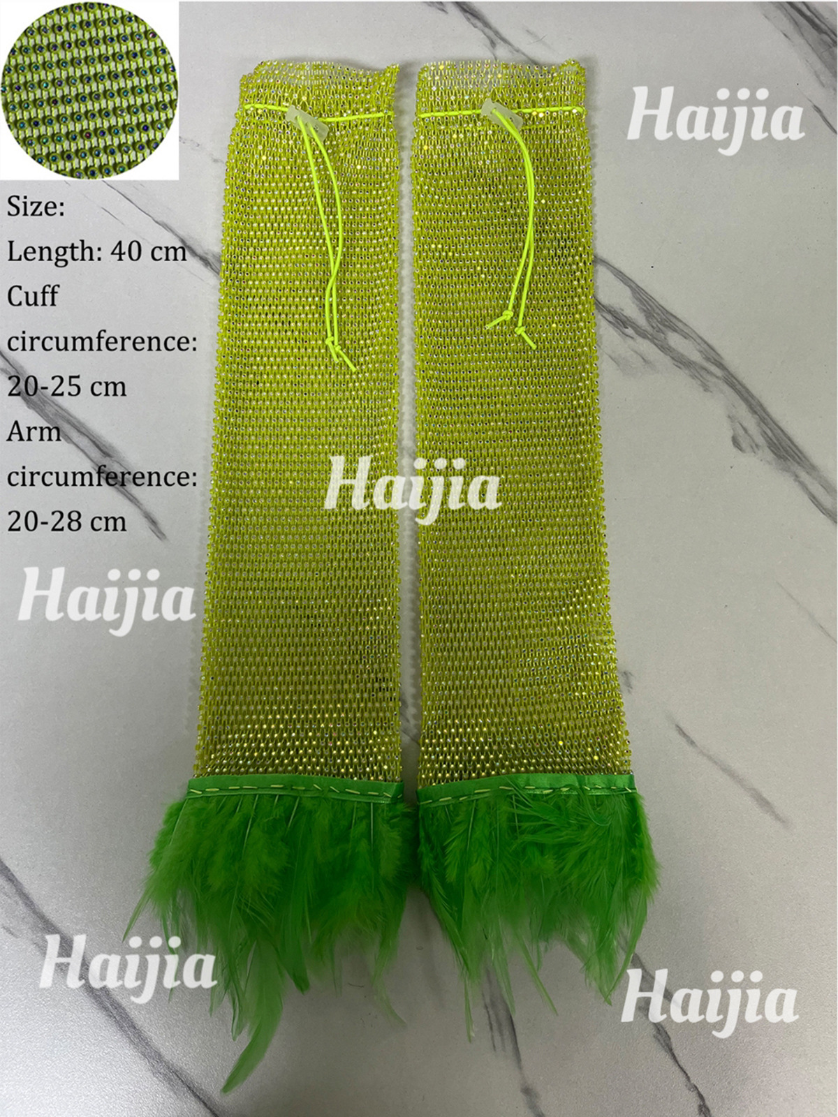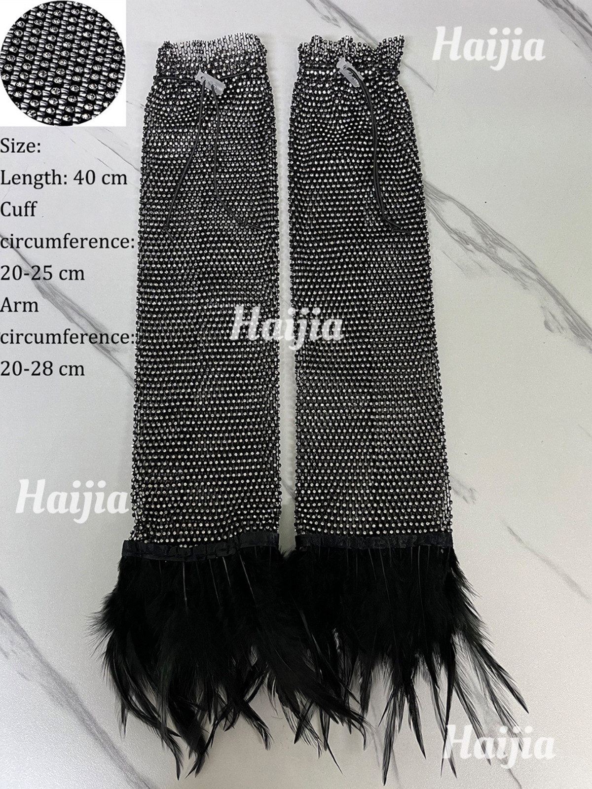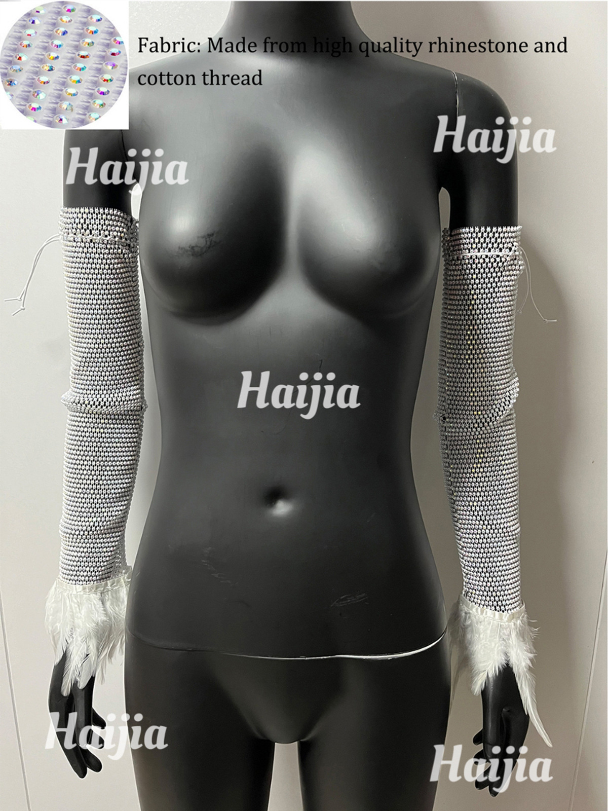 조정 가능한 탄성 코드와 깃털 팔 슬리브가있는 고급 모조 다이아몬드 컷 아웃 스트레치 망사 깃털 슬리브스토어 가기