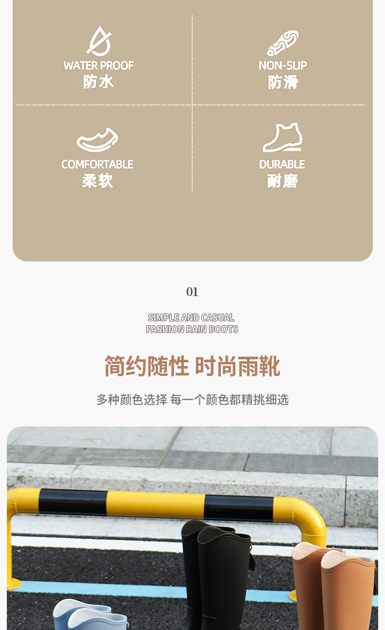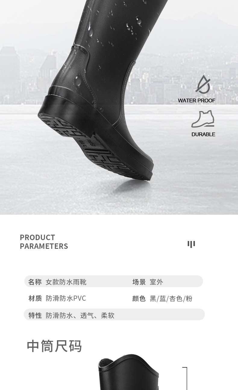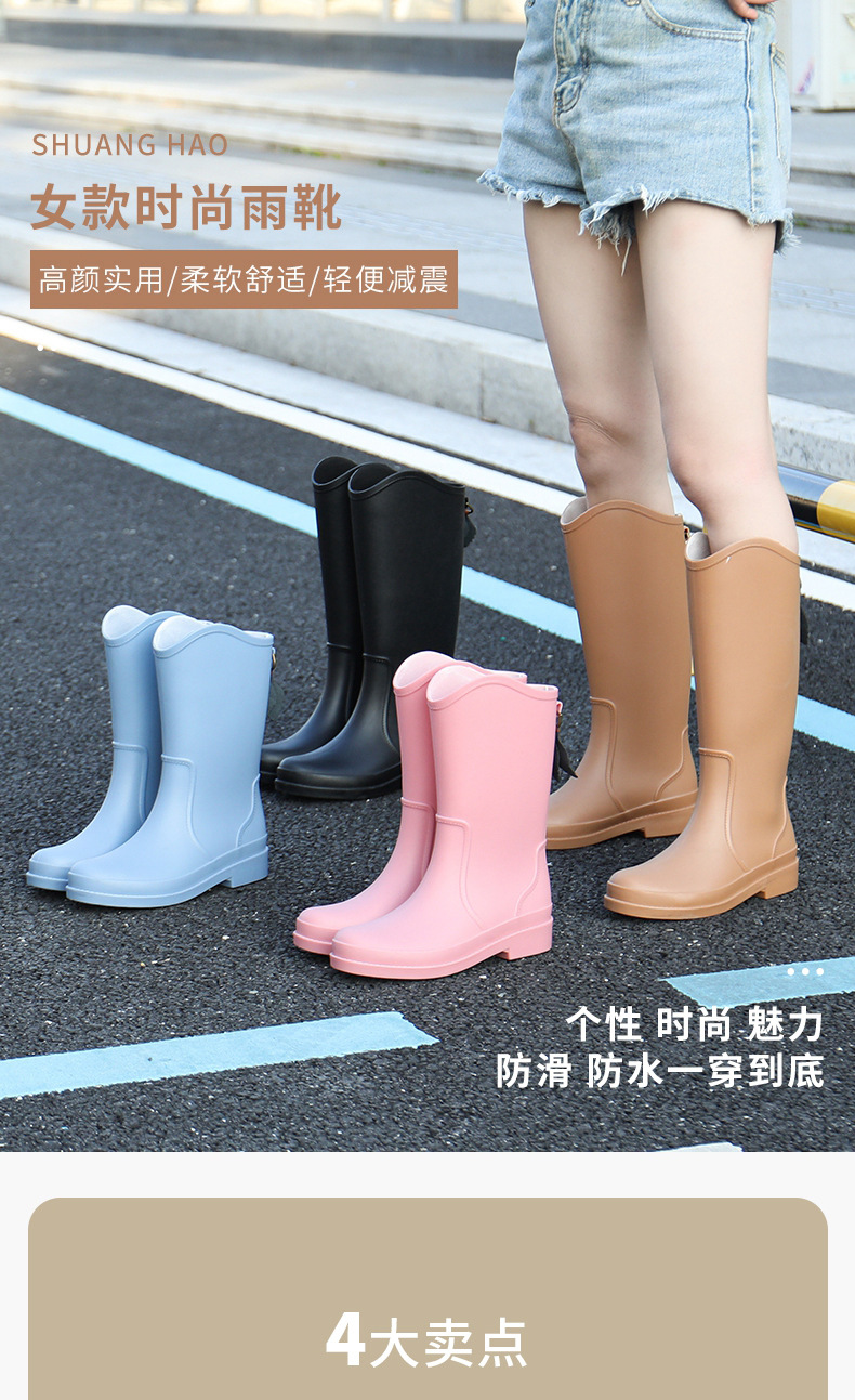 패셔너블하고 심플한 여성용 하이탑 장화, 방수 및 미끄럼 방지 워터부츠, 내마모성 아우터 슈즈, 주방 작업 슬리브 여성화
