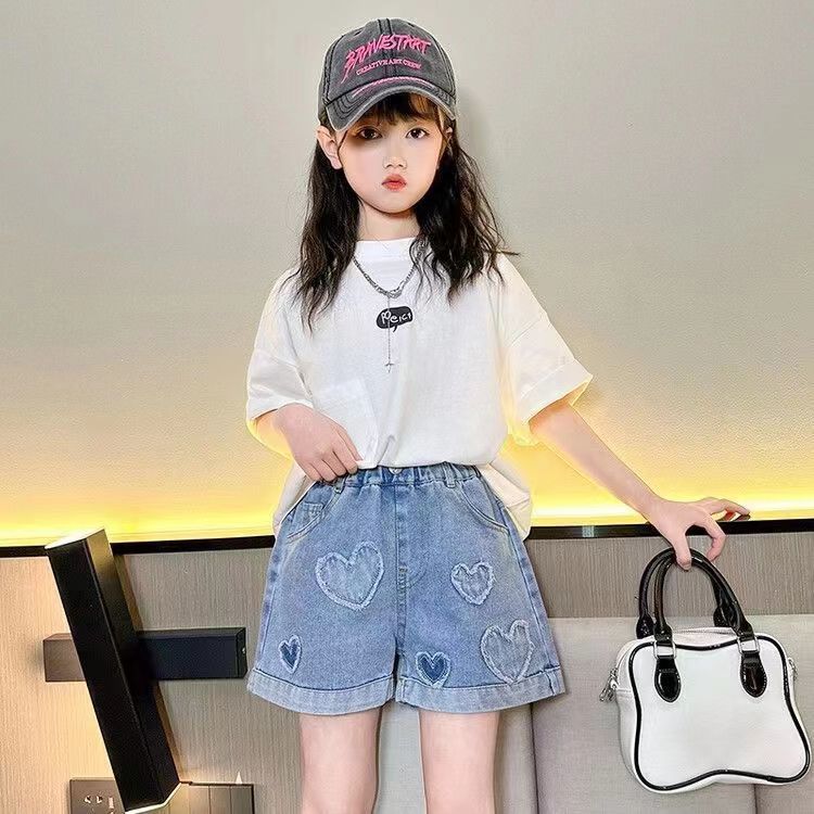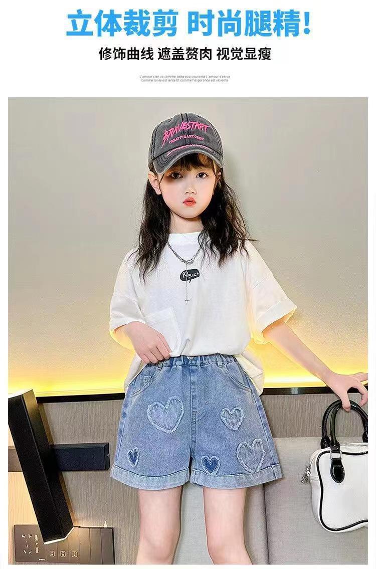 소녀 2024 새로운 스타일 데님 반바지 느슨한 편안한 어린이 유행 외부 착용 올매치 여름 핫 바지 얇은