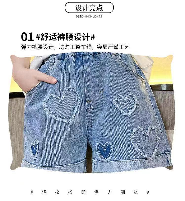 소녀 2024 새로운 스타일 데님 반바지 느슨한 편안한 어린이 유행 외부 착용 올매치 여름 핫 바지 얇은스토어 가기