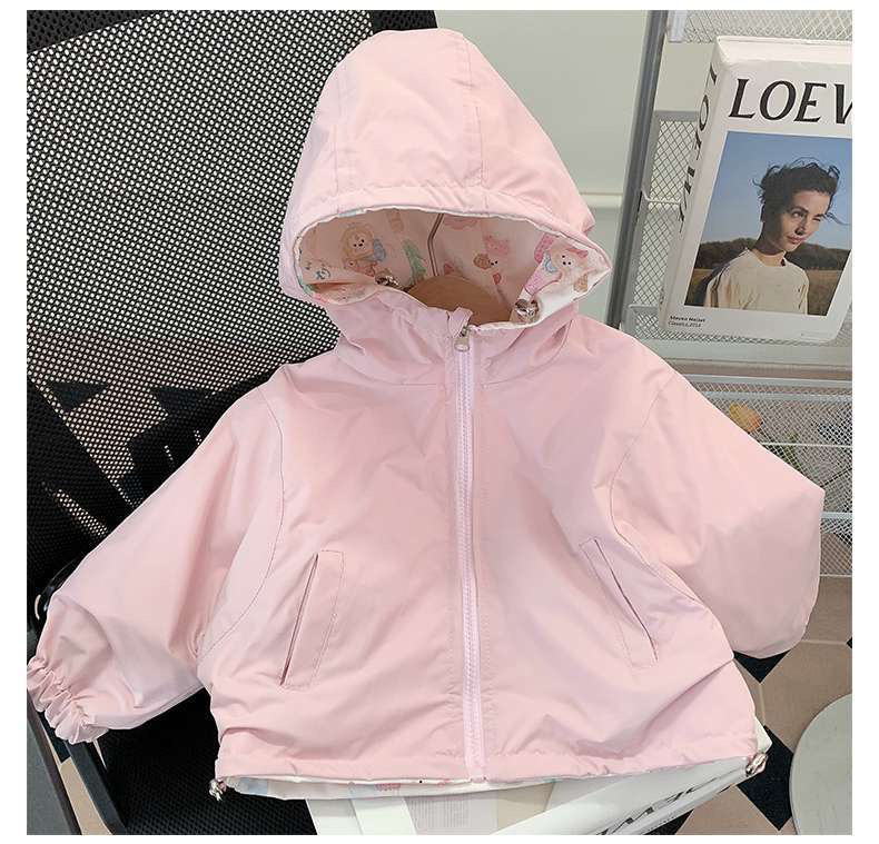 소녀의 봄과 가을 어린이 코트 2025 서양식 새로운 양면 아기 탑 가을 후드 자켓스토어 가기