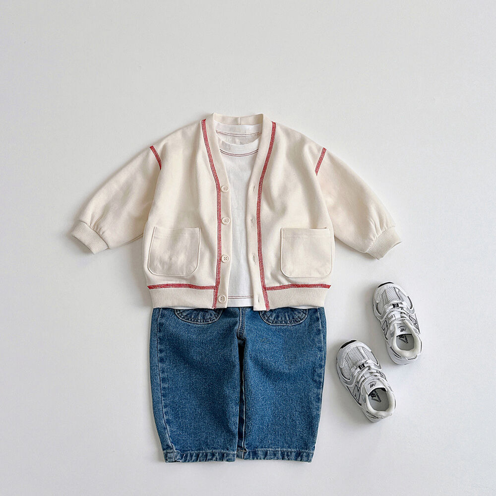 25春季儿童长袖套装ins小熊印花小童两件套中小童圆领运动套装
