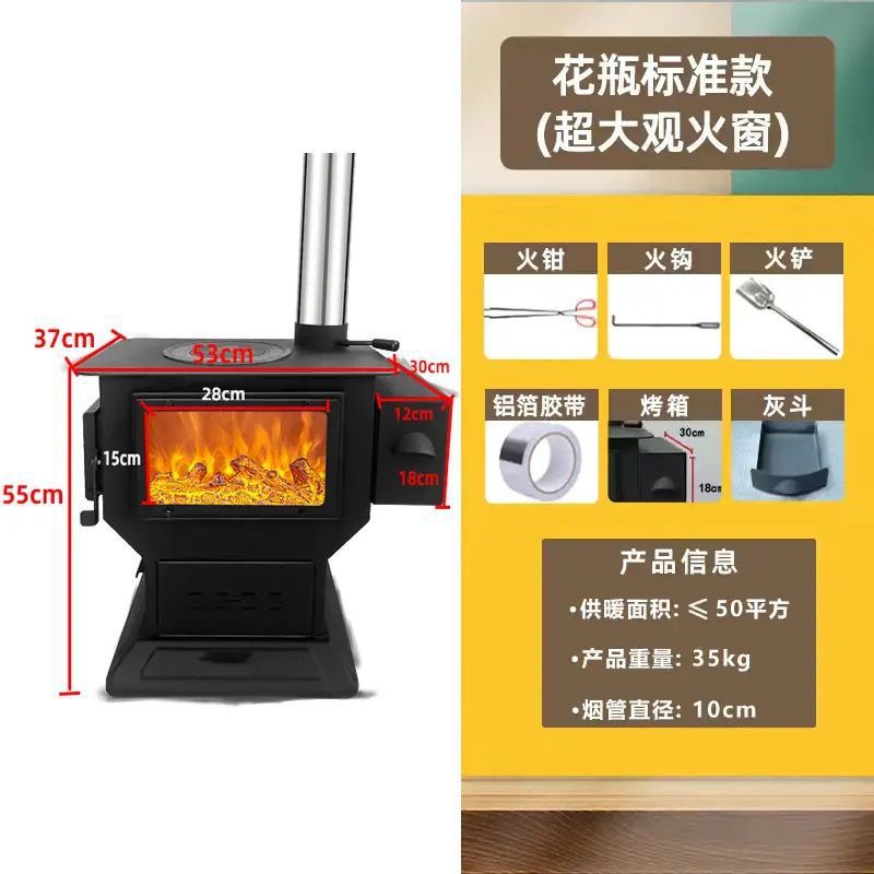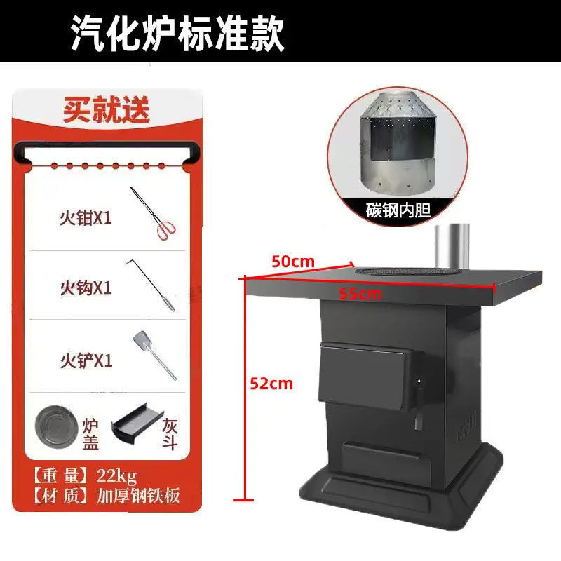 • 두꺼운 가스화로 - 화재 관찰 창 포함 - 석탄 장작 3용 모델 - 경제적이고 저렴한 6개 액세서리