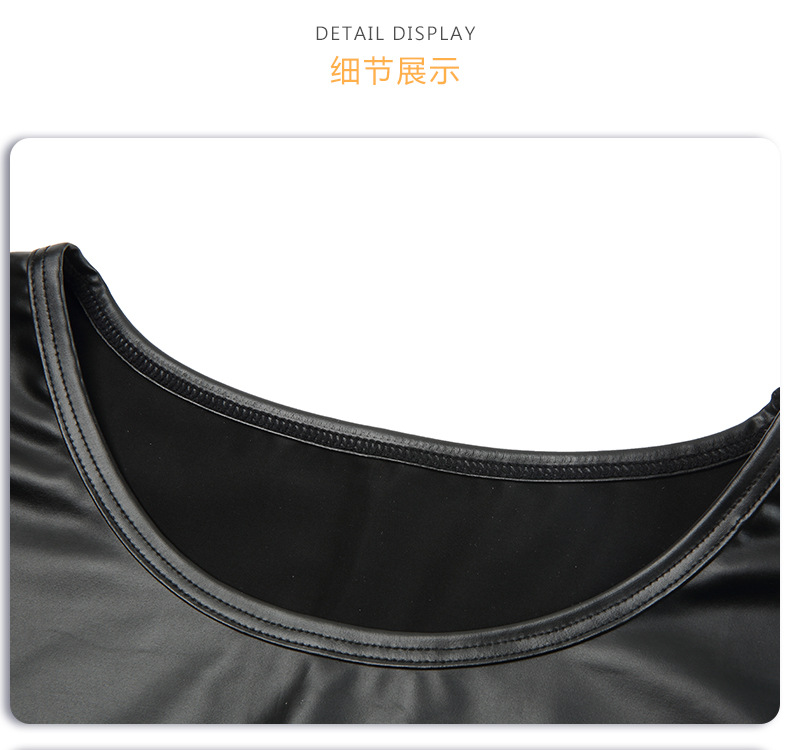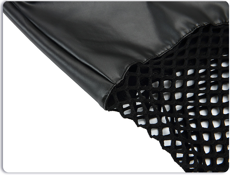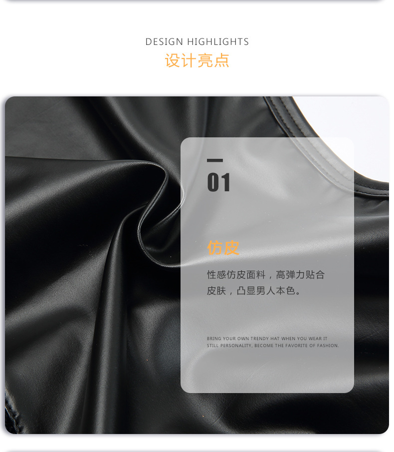 공장 도매 남성 티셔츠 섹시한 coquettish 모조 가죽 투명 승무원 목 낚시 그물 플러스 사이즈 탑 바지 없음