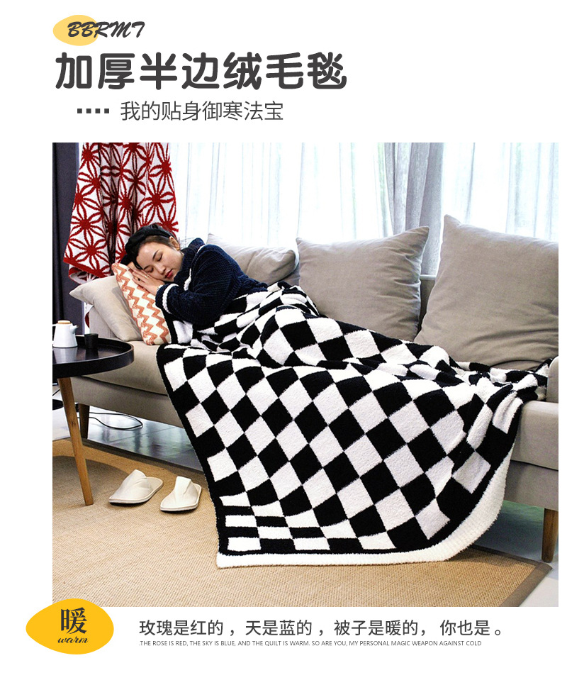 도매 인터넷 연예인 체커 보드 소파 담요 빛 고급 고급 가을 및 겨울 반 벨벳 두꺼운 사무실 소파 담요