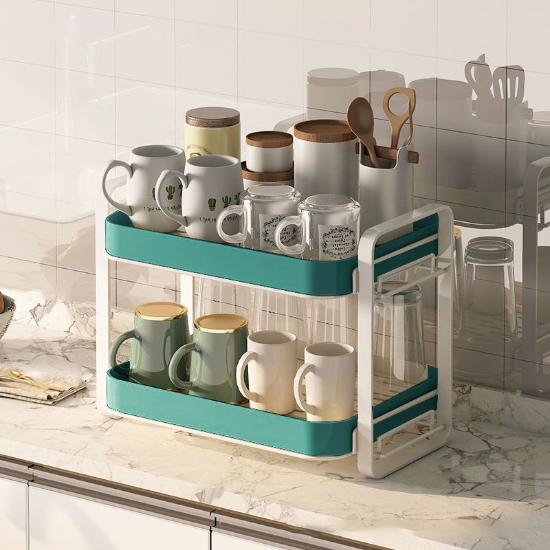 워터 컵 선반 스토리지 랙 주방 카운터 탑 가정용 데스크탑 스토리지 랙 워터 컵 랙 더블 레이어 하이 레벨 라이트 럭셔리